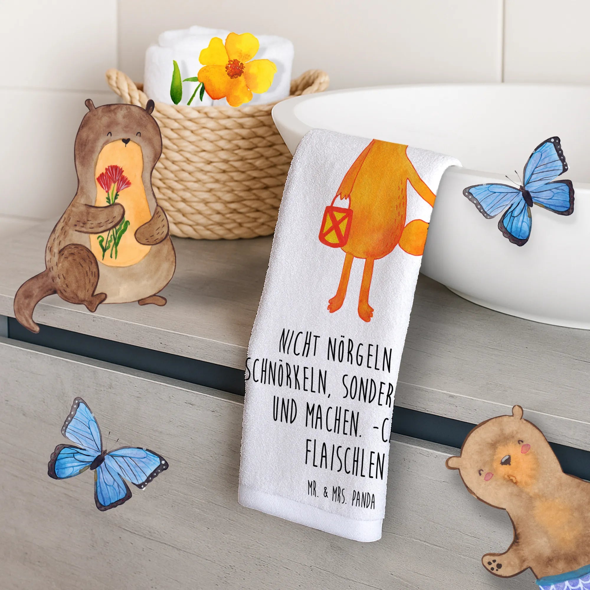 Das wunderschöne Gästehandtuch "Fuchs Laterne" von Mr. & Mrs. Panda ist das perfekte Geschenk für alle, die eine Portion Gemütlichkeit und Freude in ihr Badezimmer bringen möchten! Mit seinem charmanten Design, das einen süßen Fuchs mit einer Laterne zeigt, verzaubert es jeden, der es sieht. Das handgezeichnete Motiv ist besonders liebevoll gestaltet und bringt sofort gute Laune.