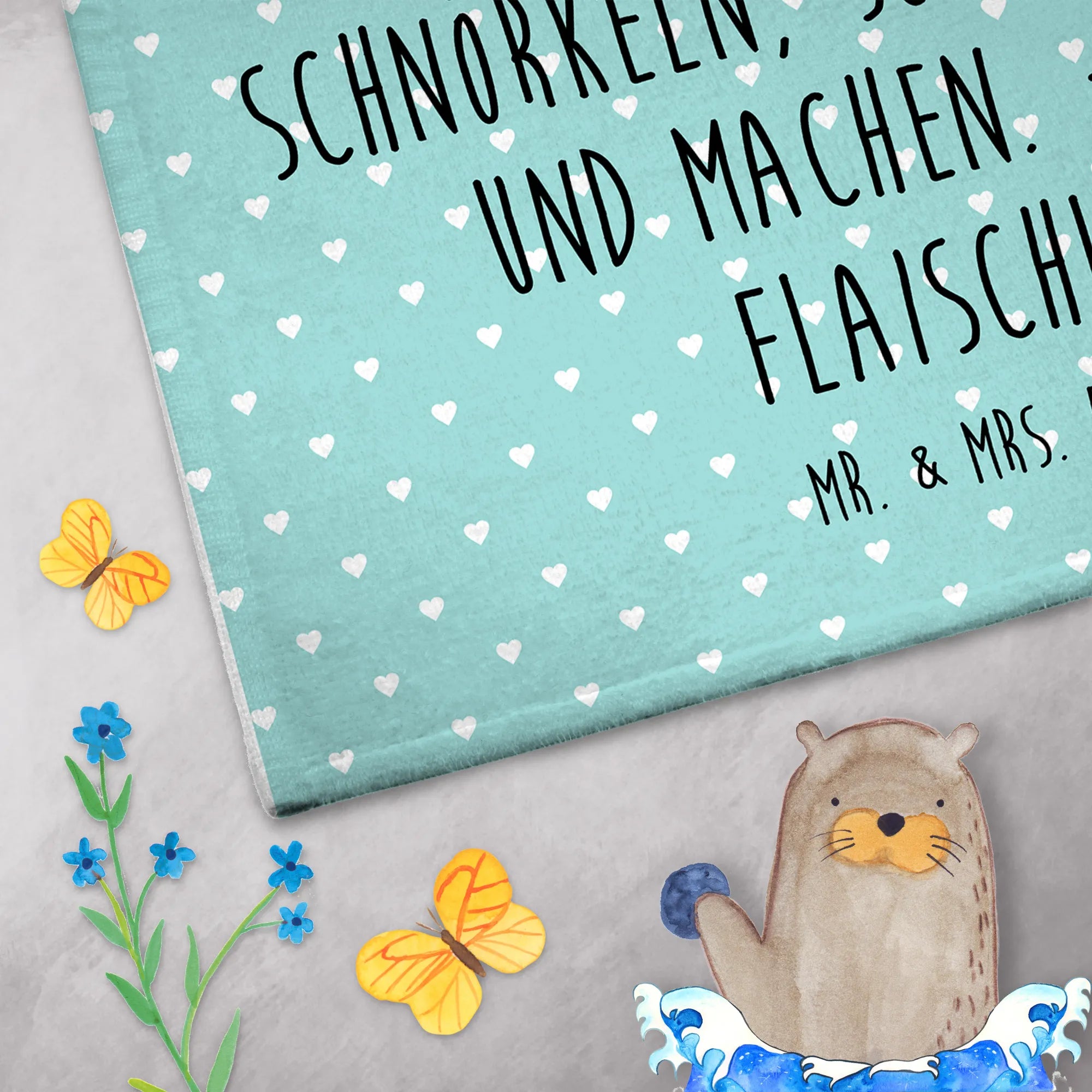 Das zauberhafte 50 x 100 Handtuch von Mr. & Mrs. Panda überrascht mit seinen niedlichen Motiven und Sprüchen. Hergestellt aus einer flauschigen Baumwollmischung, bietet es nicht nur eine weiche Oberfläche, sondern auch ein bequemes Duschgefühl. Mit den Maßen 500 mm x 100 mm passt es perfekt in jede Badtasche und ist somit das ideale Urlaub Handtuch. Dieses Frotteehandtuch ist zudem pflegeleicht und kann problemlos bei 30°C in der Waschmaschine gewaschen werden. Es eignet sich hervorragend als Geschenk für Freunde und Familie oder als Gästetuch, das die gute Laune aufhellt und jede Dusche zu einem Vergnügen macht. Das Handtuch ist allseitig umsäumt und schön verarbeitet mit einer robusten Doppelnaht, die die Langlebigkeit garantiert. Bring Farbe und Freude in dein Badezimmer mit diesem außergewöhnlichen Handtuch!