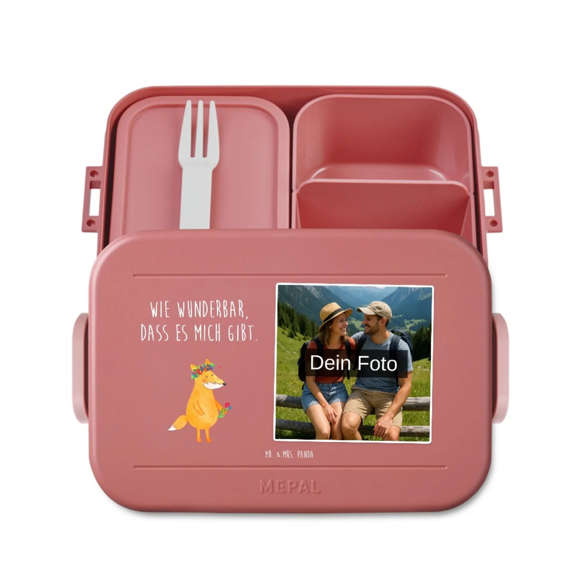 🐼 MEPAL FOTO: Personalisiere deine MEPAL Foto Bentobox mit Wunschfoto; 900 ml, herausnehmbare Einsätze, Snackgabel, liebevoll gestaltet.