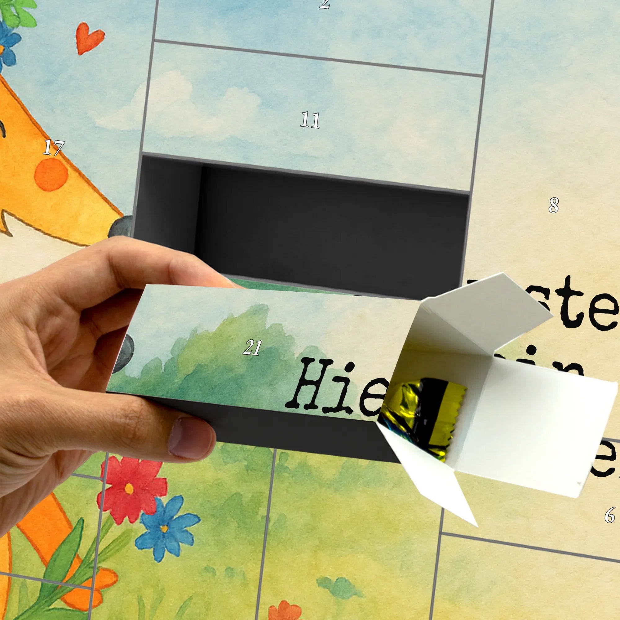 Personalisierter Befüllbarer Adventskalender von Mr. & Mrs. Panda – dein perfekter Begleiter durch die Vorweihnachtszeit! Dieser liebevoll gestaltete Adventskalender ist bedruckt mit wunderschönen Sprüchen und Motiven von Mr. & Mrs. Panda und lässt sich ganz nach deinem Geschmack personalisieren: Trage deinen Wunschnamen oder Wunschtext ein, und wir drucken ihn auf die Vorderseite. Auf der Frontseite findest du eine zauberhafte Zeichnung von Mrs. Panda, die dem Kalender einen warmen, persönlichen Touch verleiht. Der Kalender verfügt über 24 praktische Schachteln zum Selbstbefüllen, ideal für kleine Überraschungen, Süßigkeiten oder liebe Botschaften. Material: stabiler Adventskalender Karton mit brillanter Druckqualität und seidenmatter Oberfläche für eine hochwertige Optik. Besonderheit: inklusive Aufstellvorrichtung, sodass du den Kalender überall dekorativ platzieren kannst. Besonderer Hinweis: wird ohne Füllung geliefert – so kannst du ihn individuell bestücken. Maße: Breite: 619 mm, Höhe: 405 mm, Tiefe: 50 mm. Ein tolles Geschenk für Familie, Freunde oder als persönliche Deko für dein Zuhause. Bestelle jetzt deinen personalisierten Adventskalender und erfreue deine Liebsten jeden Tag im Dezember mit kleinen Überraschungen!