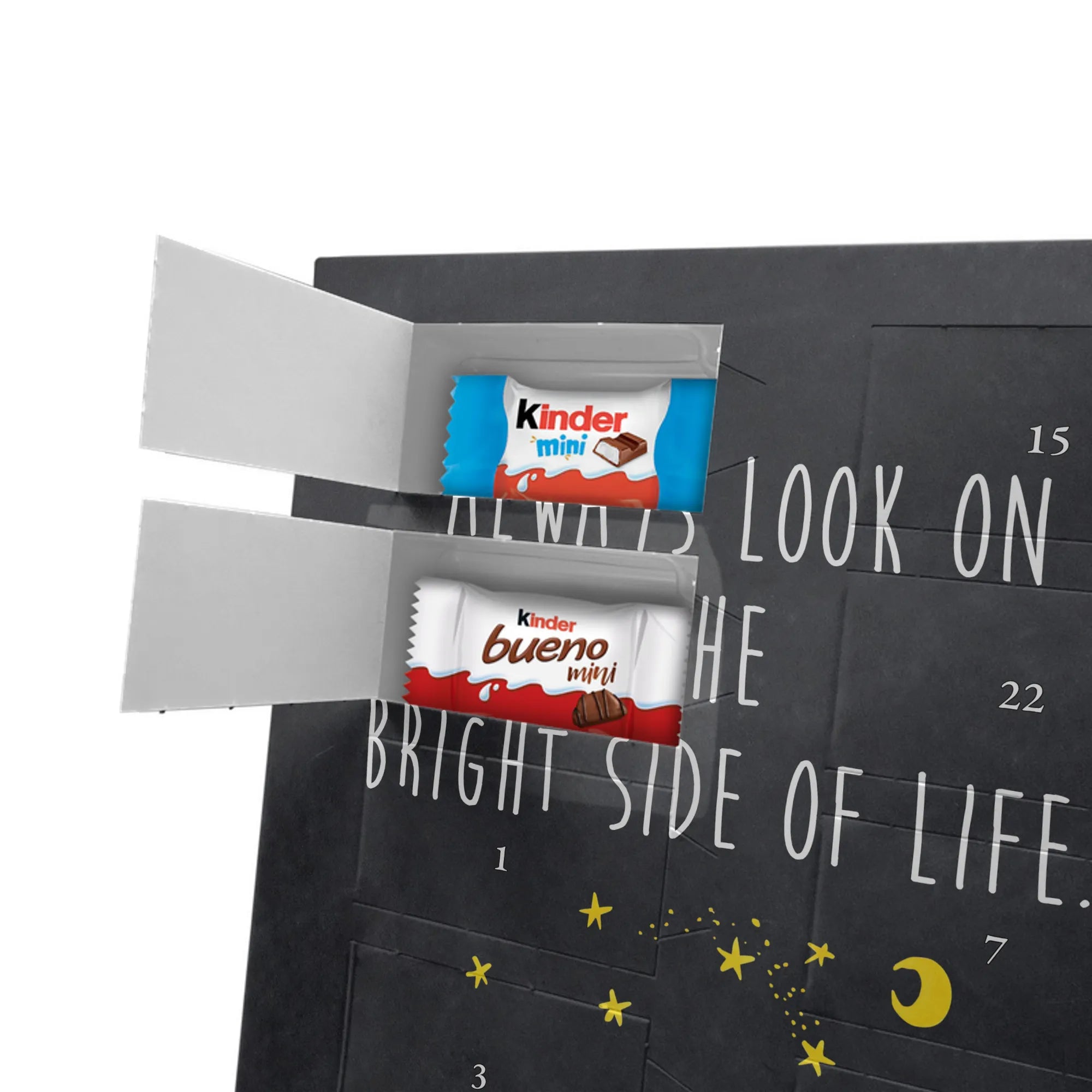 Personalisierter Schoko Foto Adventskalender von Mr. & Mrs. Panda – ein liebevoll gestaltetes Geschenk, das Vorfreude und Genuss vereint. In diesem personalisierten Schoko Foto Adventskalender kannst du dein Lieblingsfoto einsetzen und so jeden Tag im Dezember mit einem kleinen Lächeln öffnen. Der Kalender ist bedruckt mit unseren typischen Mr. & Mrs. Panda Motiven und süßen Sprüchen, die perfekt zu deinem Foto passen. Achte bitte bei der Bildauswahl auf hohe Auflösung, damit der Druck klar und brillant wird. Wähle einen passenden Bildausschnitt, damit keine wichtigen Details abgeschnitten werden. Lade nur Bilder hoch, bei denen du die Bildrechte besitzt oder die Zustimmung der abgebildeten Personen vorliegt. Die Fotos werden weder nachbearbeitet noch zugeschnitten; Rücknahme bei personalisierten Foto-Artikeln ist ausgeschlossen. Die Druckqualität ist brillant mit einer seidenmatten Oberflächenveredelung und bedruckten Seitenflächen für ein rundum schönes Erscheinungsbild. Maße: 355 mm x 245 mm x 11 mm. Praktisch: Du kannst den Adventskalender entweder aufstellen oder an die Wand hängen. Gefüllt ist der Kalender mit kinder® Schokolade – genauer: kinder® Schoko-Bons, kinder® Bueno mini und kinder® Schokolade mini. Bitte beachte: Um das beste Druckergebnis zu erzielen, lade ein hochwertiges Foto hoch und kontrolliere vor dem Bestellen den Bildausschnitt. Dieser Adventskalender ist das perfekte, persönliche Geschenk für Familie, Freunde oder für dich selbst – voller Liebe, süßer Überraschungen und dem unverwechselbaren Mr. & Mrs. Panda Charme.