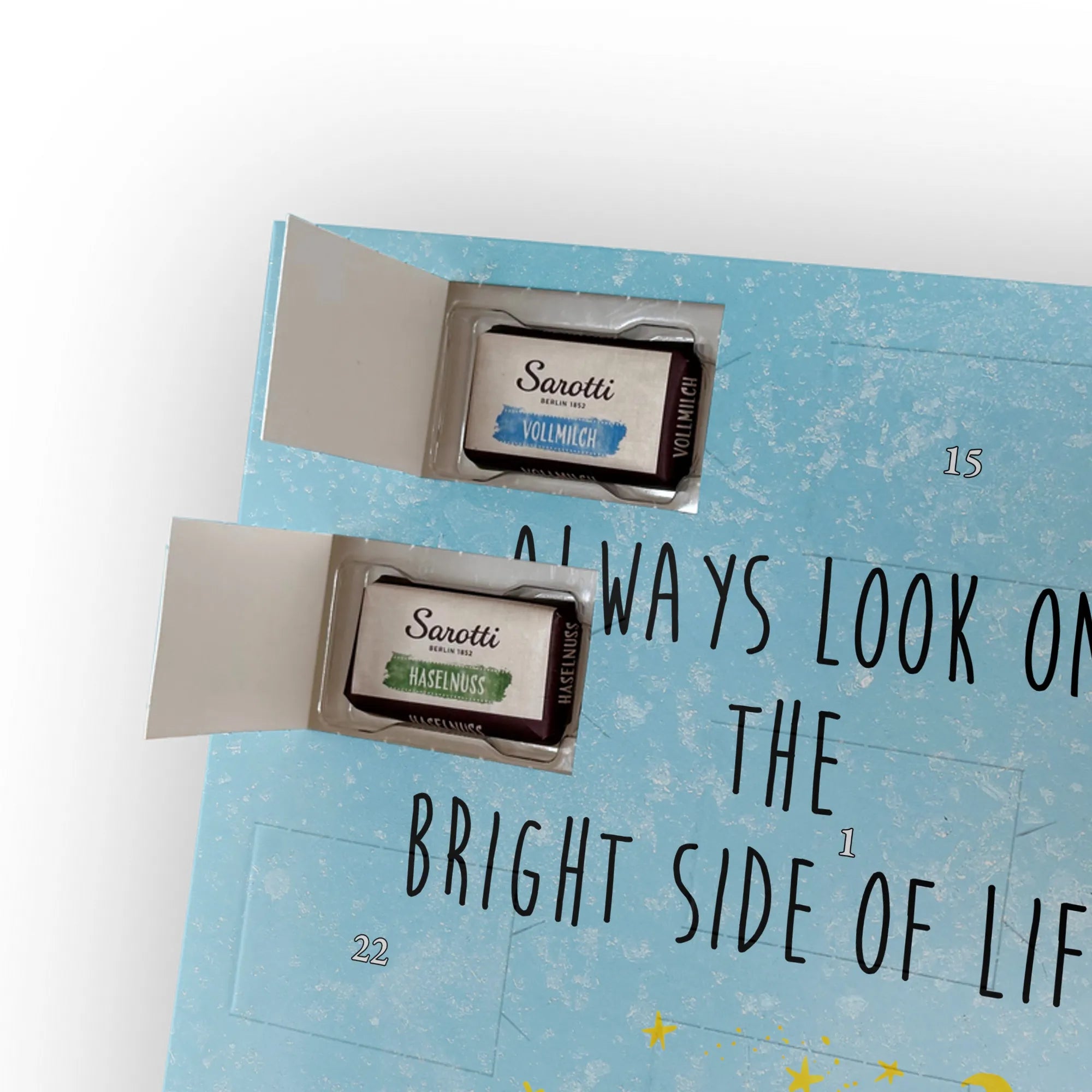 🐼 PERSONALISIERTER SCHOKO KALENDER: Aufhängbar oder aufstellbar, seidenmatt, bedruckt.