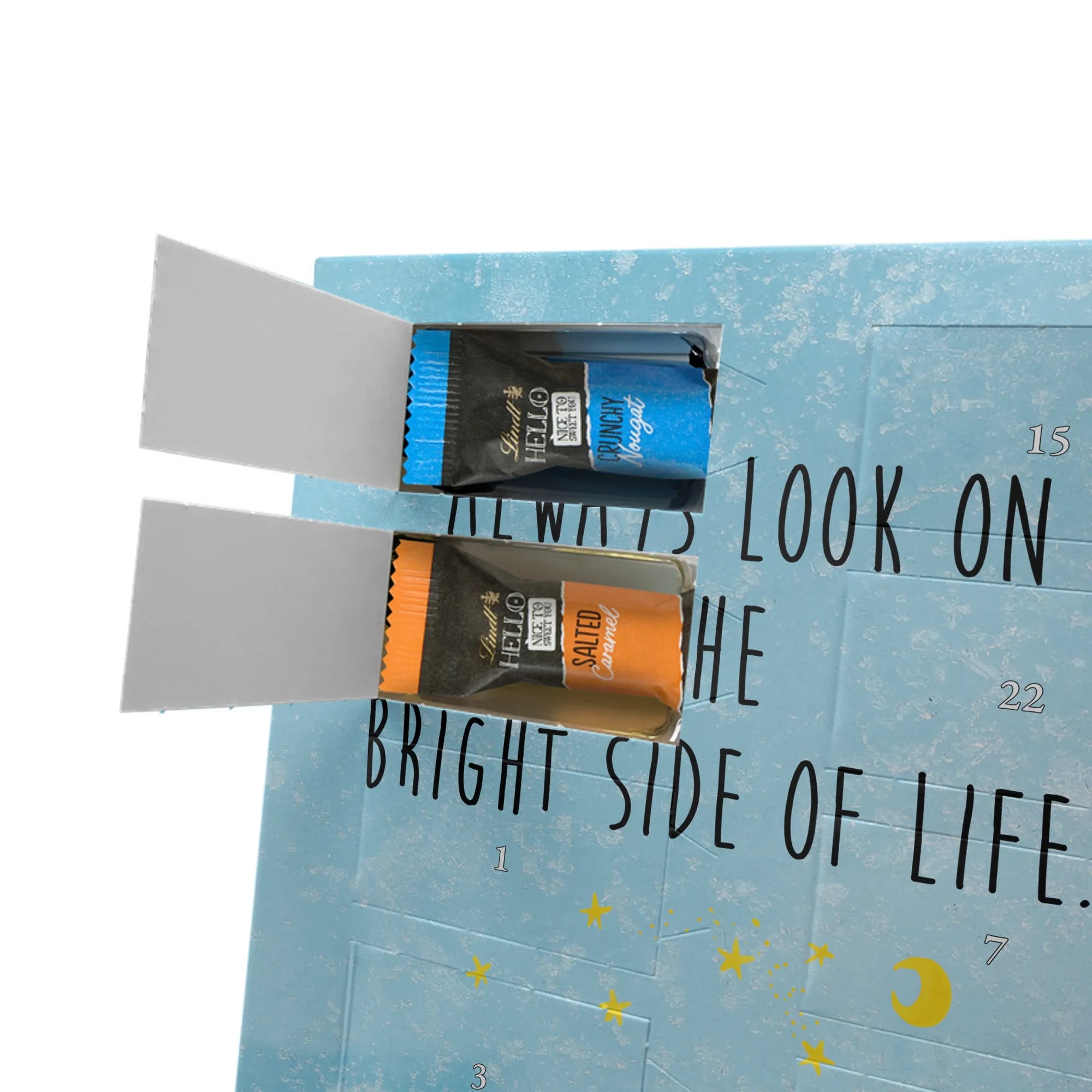 Entdecke unseren personalisierten Schoko-Foto-Adventskalender von Mr. & Mrs. Panda – ein liebevoll gestalteter Adventsbegleiter, der dich jeden Tag im Dezember mit süßen Überraschungen verwöhnt. Der Kalender ist mit charmanten Motiven und kurzen Sprüchen bedruckt und lässt sich mit deinem Lieblingsfoto personalisieren. Achte auf eine gute Bildqualität und den richtigen Bildausschnitt, damit dein Foto sauber gedruckt wird. Bitte nur Fotos hochladen, bei denen du die Rechte besitzt. Die hochwertige, seidenmatte Oberfläche und die bedruckten Seitenflächen verleihen dem Kalender einen besonderen Look. Maße: 325 mm x 225 mm x 27 mm. Innen findest du 24 einzeln verpackte Schokoladen Mini Sticks in vier köstlichen Sorten: Karamell-Schokoladenkuchen, Kekse, Knuspriger Nougat und Erdbeer-Cheesecake. Gefüllt mit Lindt Hello Schokolade. Wichtige Hinweise: Allergene wie Milcheiweiß, Milchzucker, Soja, Weizen und Haselnüsse sind enthalten. Kann Spuren von Mandeln und anderen Schalenfrüchten enthalten. Der Kalender kann aufgehängt oder aufgestellt werden. Hinweis: Fotos werden nicht nachbearbeitet oder zugeschnitten – Rücknahme ausgeschlossen. Verschenke Vorfreude mit deinem individuellen Foto-Adventskalender!