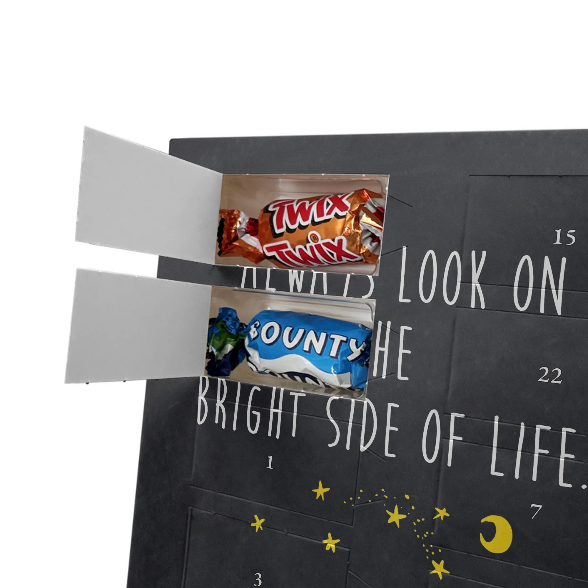 Charmanter Personalisierter Adventskalender mit Schoko-Foto von Mr. & Mrs. Panda – eine liebevolle Art, die Adventszeit zu personalisieren. Der Kalender ist mit den typischen Mr. & Mrs. Panda Motiven und herzlichen Sprüchen bedruckt; du kannst die Vorderseite mit deinem Lieblingsfoto gestalten. Achte auf eine hohe Auflösung deines Fotos, damit das Druckbild schön scharf wird, und kontrolliere den Bildausschnitt, damit keine wichtigen Details verloren gehen. Bitte lade nur Bilder hoch, für die du die Bildrechte besitzt oder eine Erlaubnis zur Nutzung vorliegt. Die Verarbeitung ist hochwertig: brillante Druckqualität, seidenmatte Oberflächenveredelung und bedruckte Seitenflächen für ein rundes Design. Maße: 325 mm x 225 mm x 27 mm. Der Kalender kann aufgehängt oder aufgestellt werden – ganz nach Belieben. Wichtig: Die Fotos werden nicht nachbearbeitet oder zugeschnitten; personalisierte Foto-Artikel sind vom Widerruf ausgenommen. Gefüllt ist der Adventskalender mit Celebrations Schokolade – 24 feine Füllungen in 8 verschiedenen Sorten (Maltesers, Mars, Snickers, Twix, Milky Way, Bounty, Galaxy, Galaxy Caramel). Ein persönliches Geschenk, das Erinnerungen und Genuss wunderbar verbindet.
