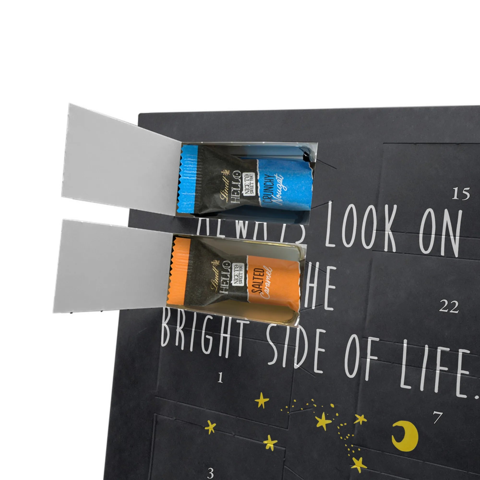 Wunderschöner Personalisierter Schoko Foto Adventskalender von Mr. & Mrs. Panda – perfekt, um dir oder deinen Liebsten die Vorweihnachtszeit zu versüßen. Dieser Adventskalender ist mit liebevollen Motiven und herzlichen Sprüchen von Mr. & Mrs. Panda bedruckt und du kannst ihn ganz einfach mit einem persönlichen Foto individualisieren. Achte bitte darauf, dass dein Foto eine hohe Auflösung hat und der Bildausschnitt passt, damit das Druckergebnis klar und strahlend wird. Lade nur Bilder hoch, an denen du die Bildrechte besitzt oder für die du die Erlaubnis hast. Die brillante Druckqualität mit seidenmatter Oberflächenveredelung sorgt für einen edlen Look, die Seitenflächen sind ebenfalls bedruckt. Maße: 325 mm x 225 mm x 27 mm. Der Kalender enthält 24 einzeln verpackte Schokoladen Mini Sticks in vier verschiedenen Sorten: Karamell-Schokoladenkuchen, Kekse, Knuspriger Nougat und Erdbeer-Cheesecake. Gefüllt mit Lindt Hello Schokolade. Allergene: Milcheiweiß, Milchzucker, Soja, Weizen, Haselnüsse. Kann Mandeln und andere Schalenfrüchte enthalten. Besonderheiten: Der Kalender kann aufgehängt oder aufgestellt werden. Bitte beachte: Die Fotos werden weder aufbereitet noch zugeschnitten – Rücknahme bei personalisierten Foto-Artikeln ist ausgeschlossen. Wir von Mr. & Mrs. Panda wünschen dir eine zuckersüße Adventszeit mit deinem ganz persönlichen Foto-Adventskalender!
