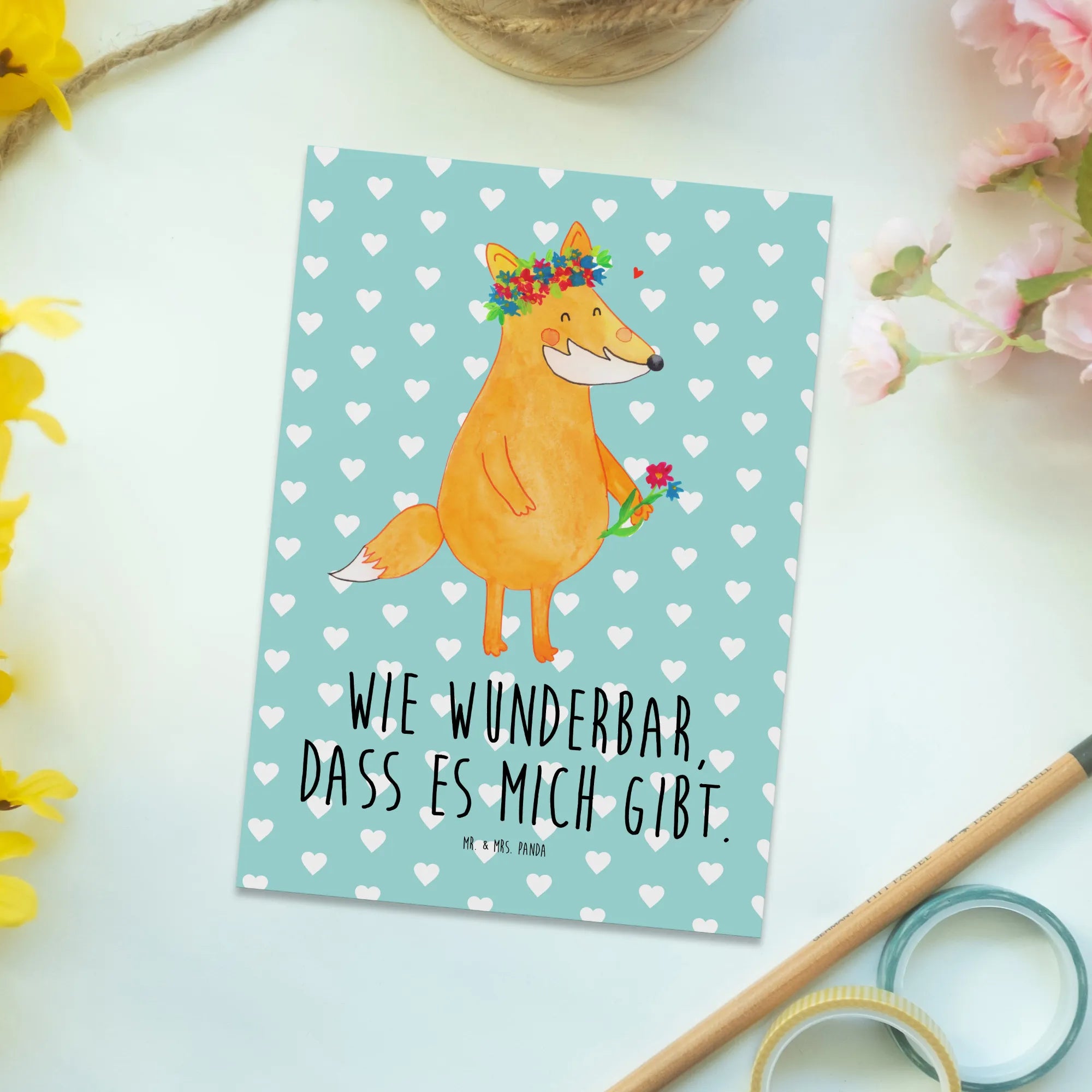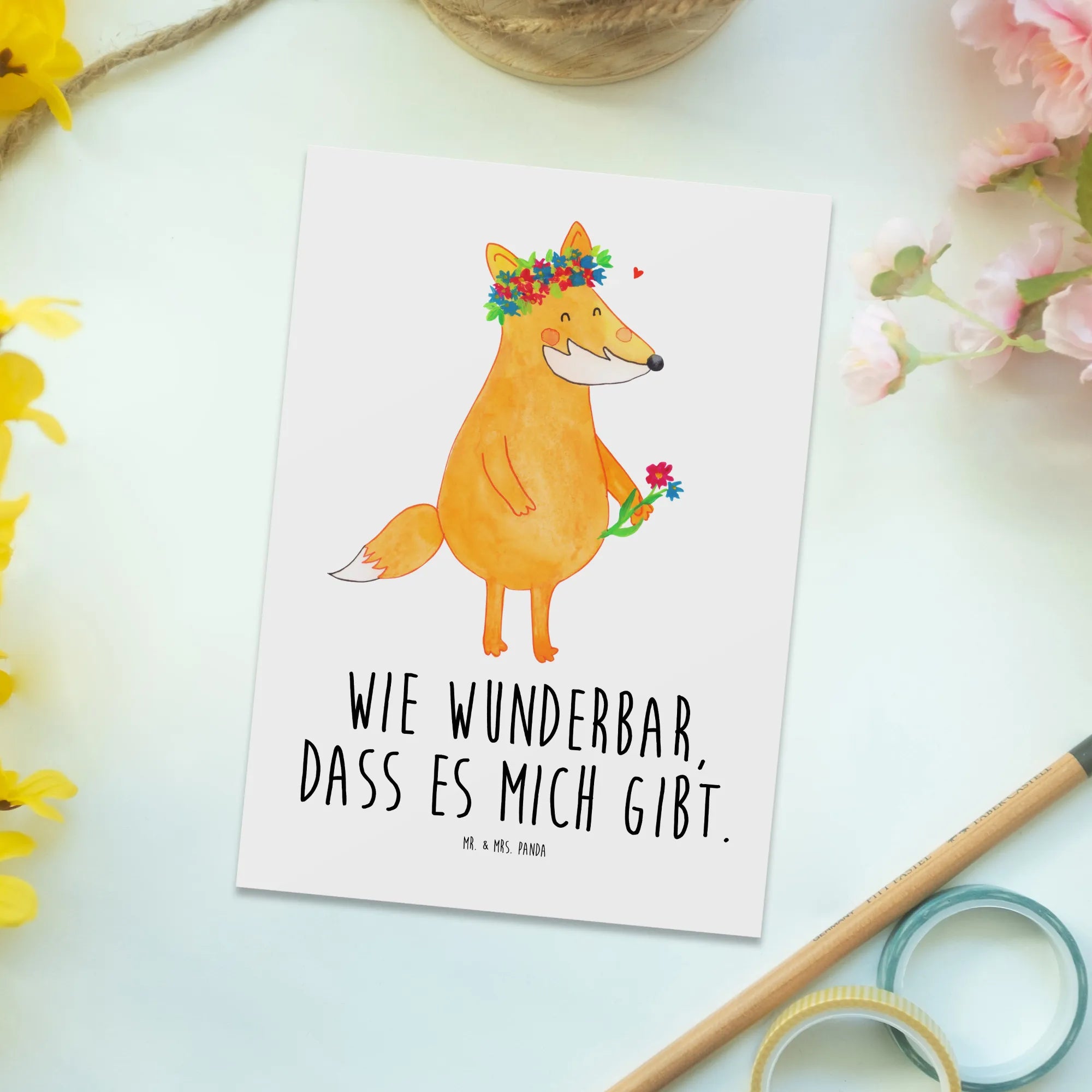 Fuchs Blumenliebe – die zauberhafte Postkarte von Mr. & Mrs. Panda