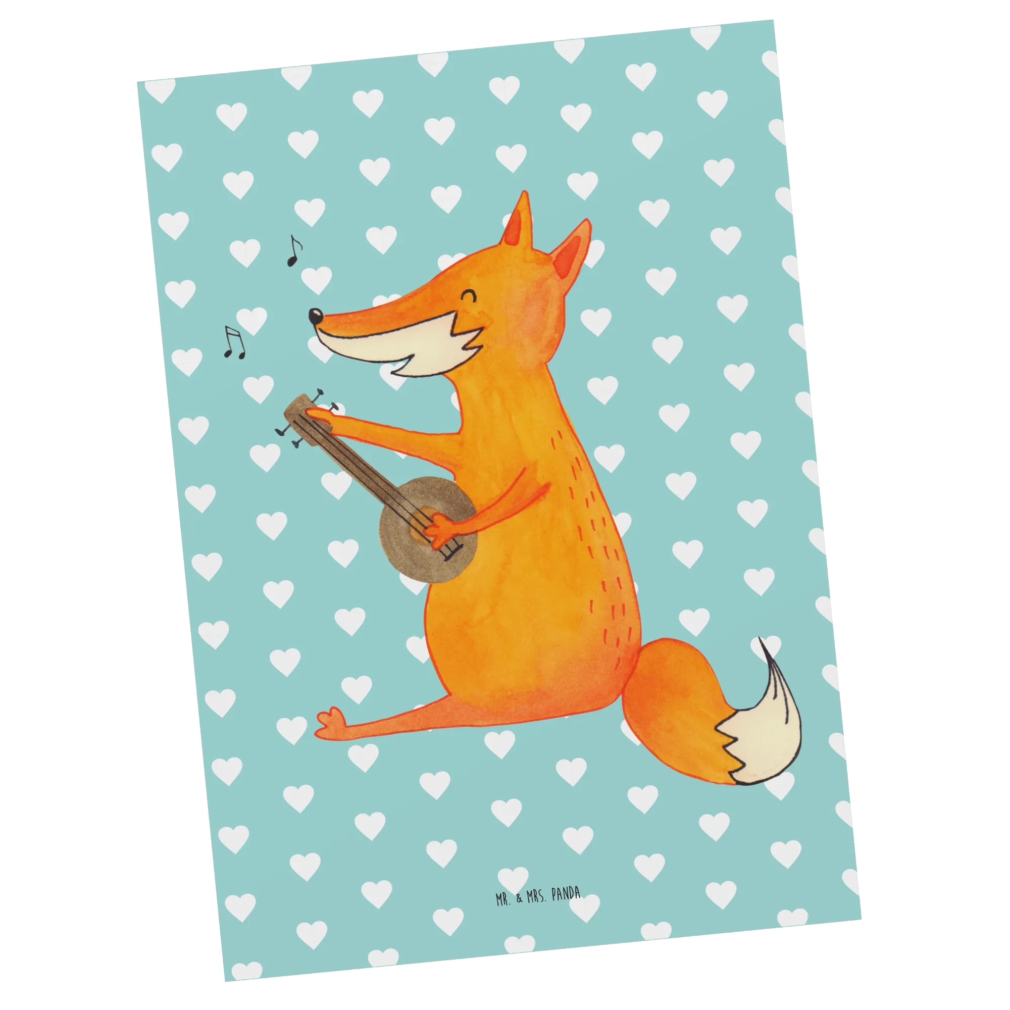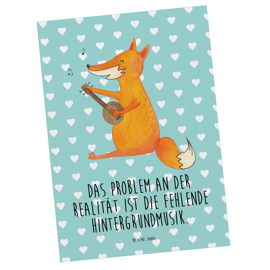 Postkarte Fuchs Gitarre - mit Spruch - Türkis Pastell