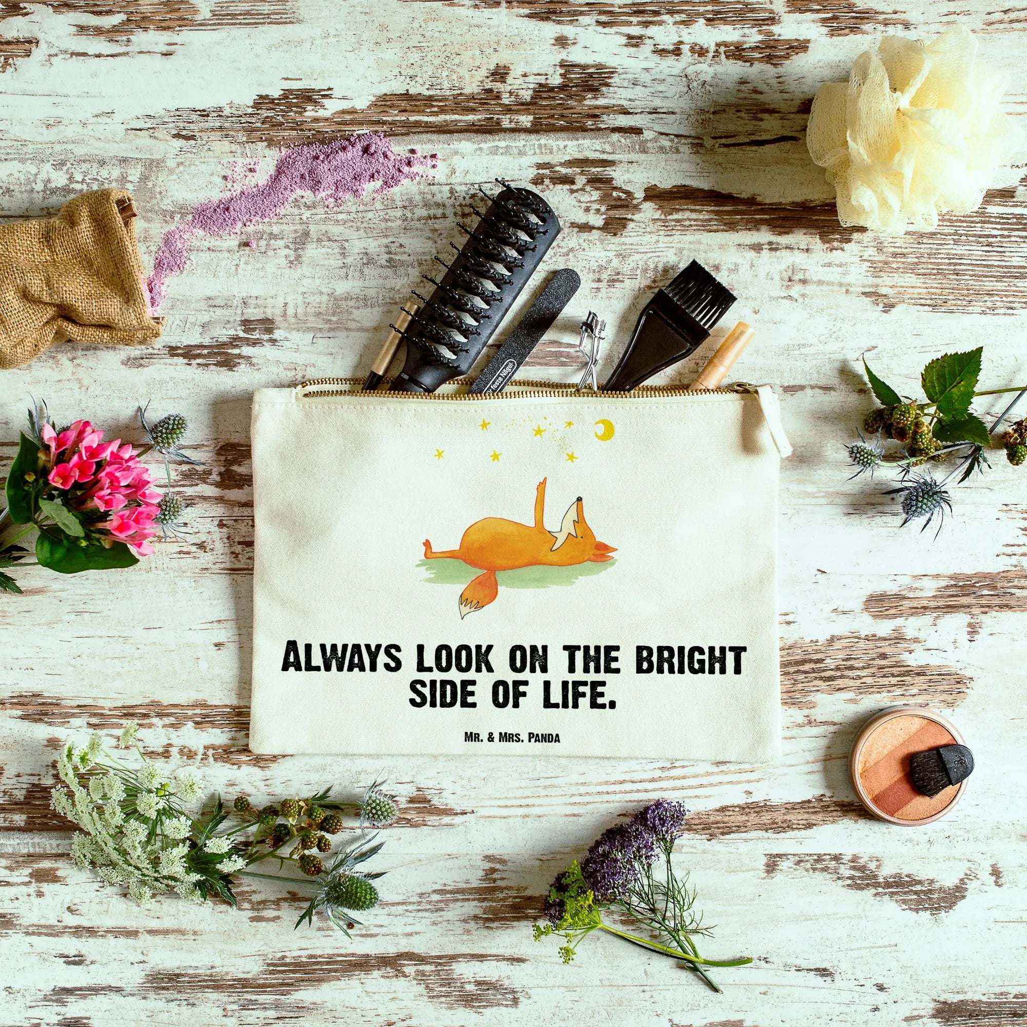 Entdecke die wunderschöne Schminktasche von Mr. & Mrs. Panda mit dem entzückenden Motiv Fuchs Sterne! Diese Kosmetiktasche ist nicht nur ein echter Hingucker, sondern auch das perfekte Accessoire für alle, die gerne ihre Kosmetikartikel stilvoll verstauen. Der süße Fuchs, der vergnügt auf dem Rücken liegt und in den Sternenhimmel schaut, lädt dich ein, das Leben aus einer positiven Perspektive zu betrachten. Mit dem Slogan 'Always look on the bright side of life' wird jeder Tag ein bisschen sonniger.