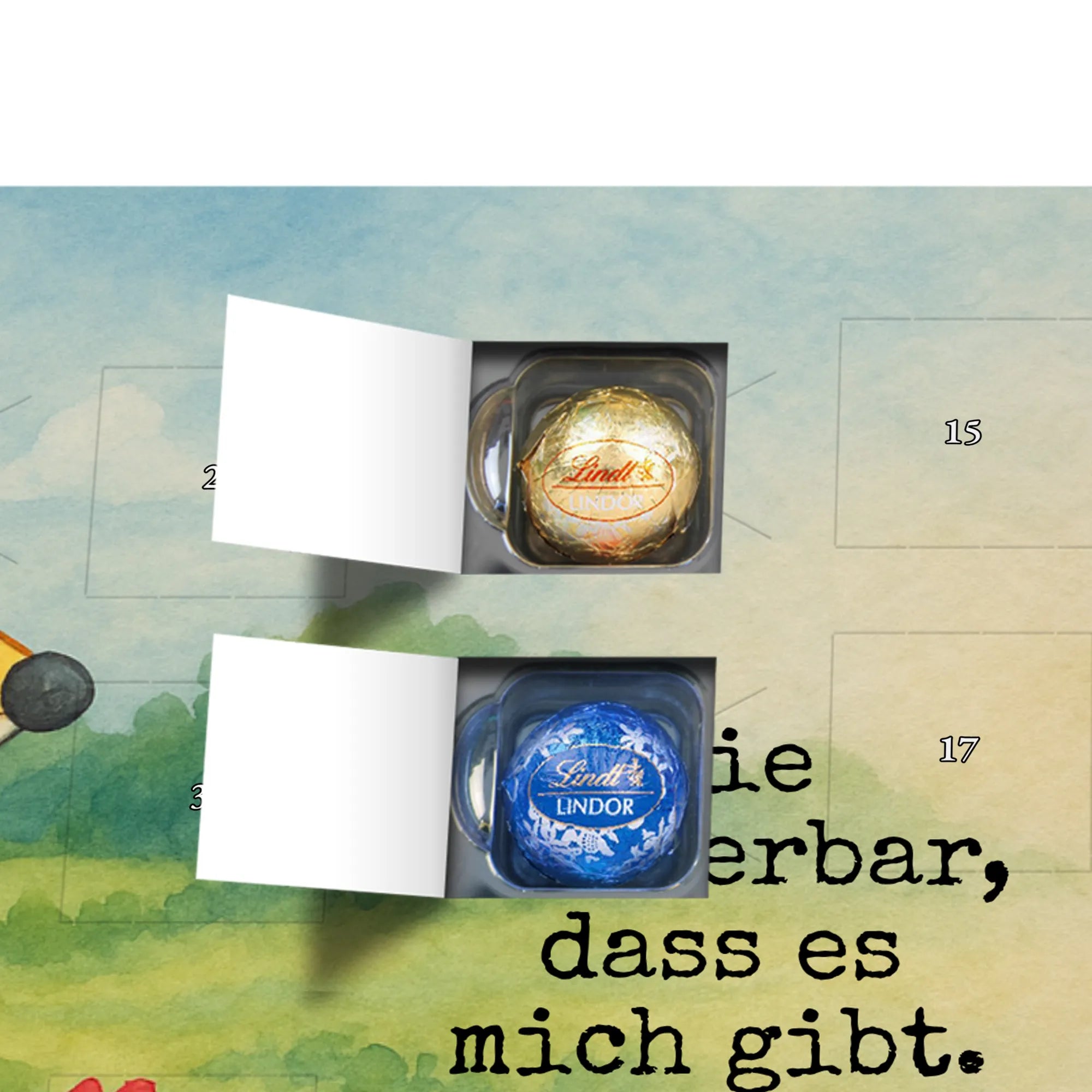 🐼 Schoko Adventskalender mit Lindt Lindor, 24 Kugeln, seidenmatter Druck, nicht personalisierbar.