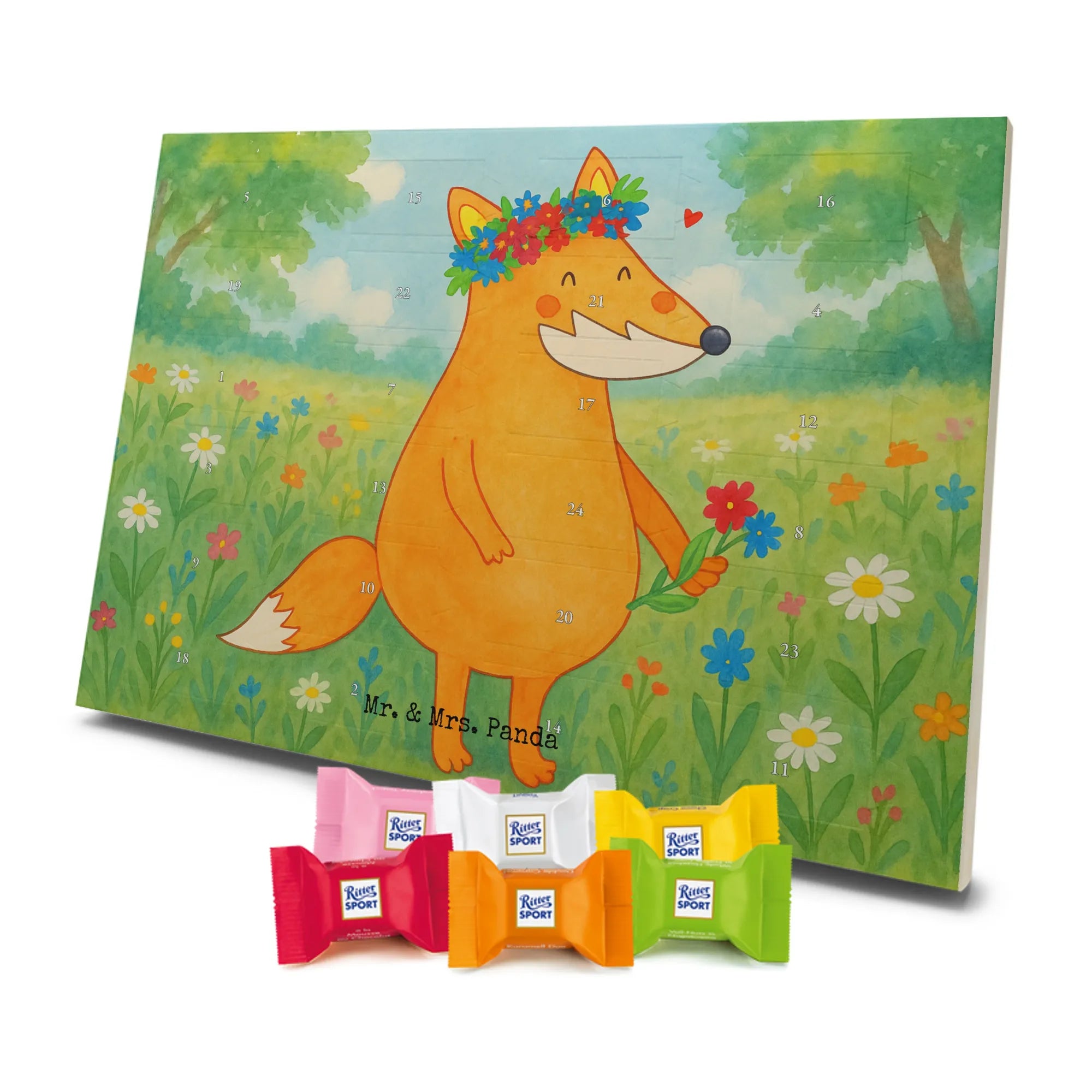 Adventskalender mit Schokolade – so schmeckt Vorfreude! Unser Mr. & Mrs. Panda Adventskalender ist liebevoll gestaltet und bedruckt mit wunderschönen Motiven & Sprüchen, die jeden Tag versüßen. Die brillante Druckqualität mit seidenmatter Oberflächenveredelung sorgt für ein edles Finish, und auch die Seitenflächen sind hübsch bedruckt. Der Kalender ist nicht personalisierbar, dafür aber vielseitig einsetzbar: Maße: 325 mm x 225 mm x 27 mm und die besondere Eigenschaft, dass du ihn aufgehängt oder aufgestellt verwenden kannst, geben dir Flexibilität bei der Dekoration. Gefüllt ist der Kalender mit Ritter Sport Schokowürfeln in beliebten Geschmacksrichtungen wie Mousse au Chocolat, Schoko Crisp, Voll-Nuss in Nougatcreme, Karamell Duo, Joghurt und Erdbeer-Joghurt. Wichtig: Es handelt sich um einen Kalender gefüllt mit Ritter Sport Schokolade, nicht um einen Kalender der Marke Ritter Sport. Ideal als Geschenk oder als Adventsdeko für dein Zuhause – kleine Schokofreuden warten hinter jedem Türchen.