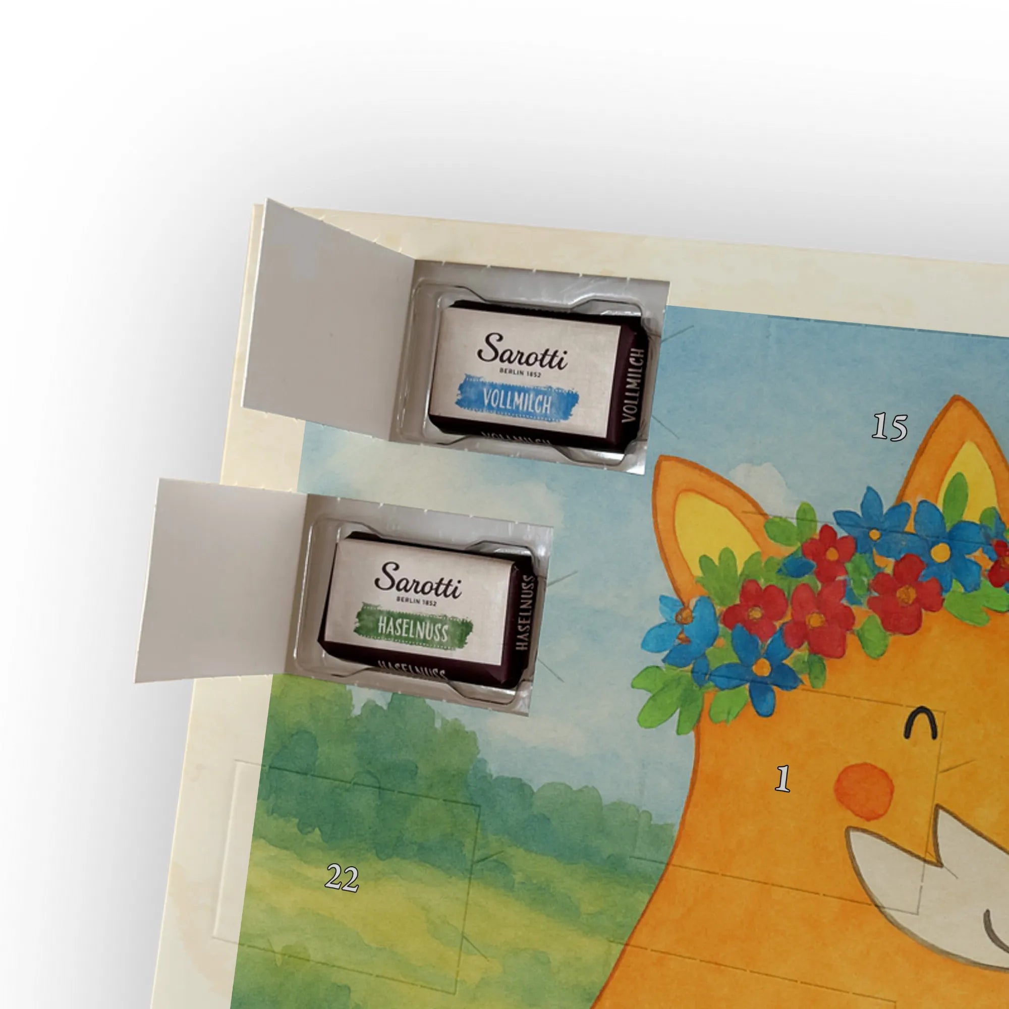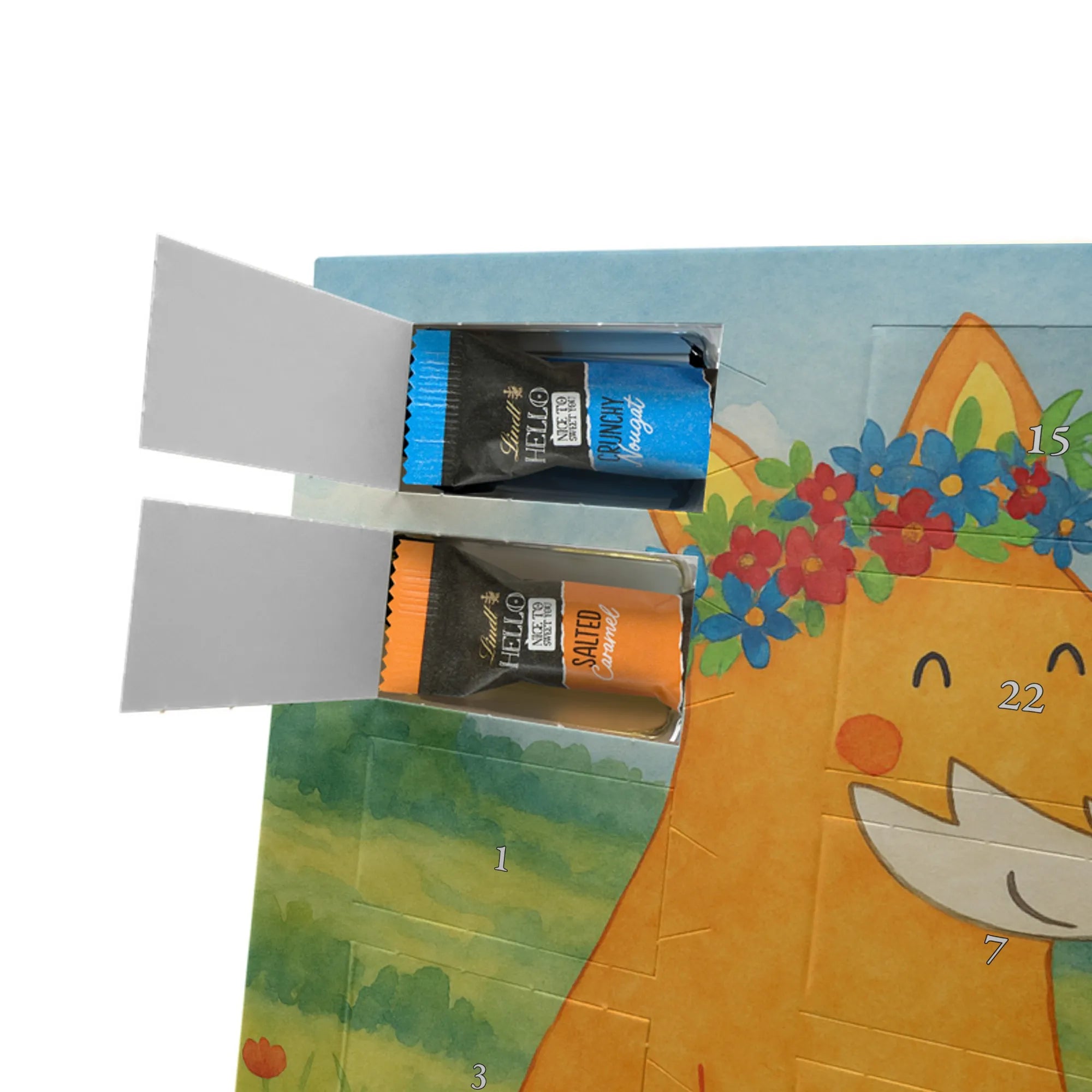 Adventskalender Fuchs Blumen Design - Lindt LINDOR - mit Spruch