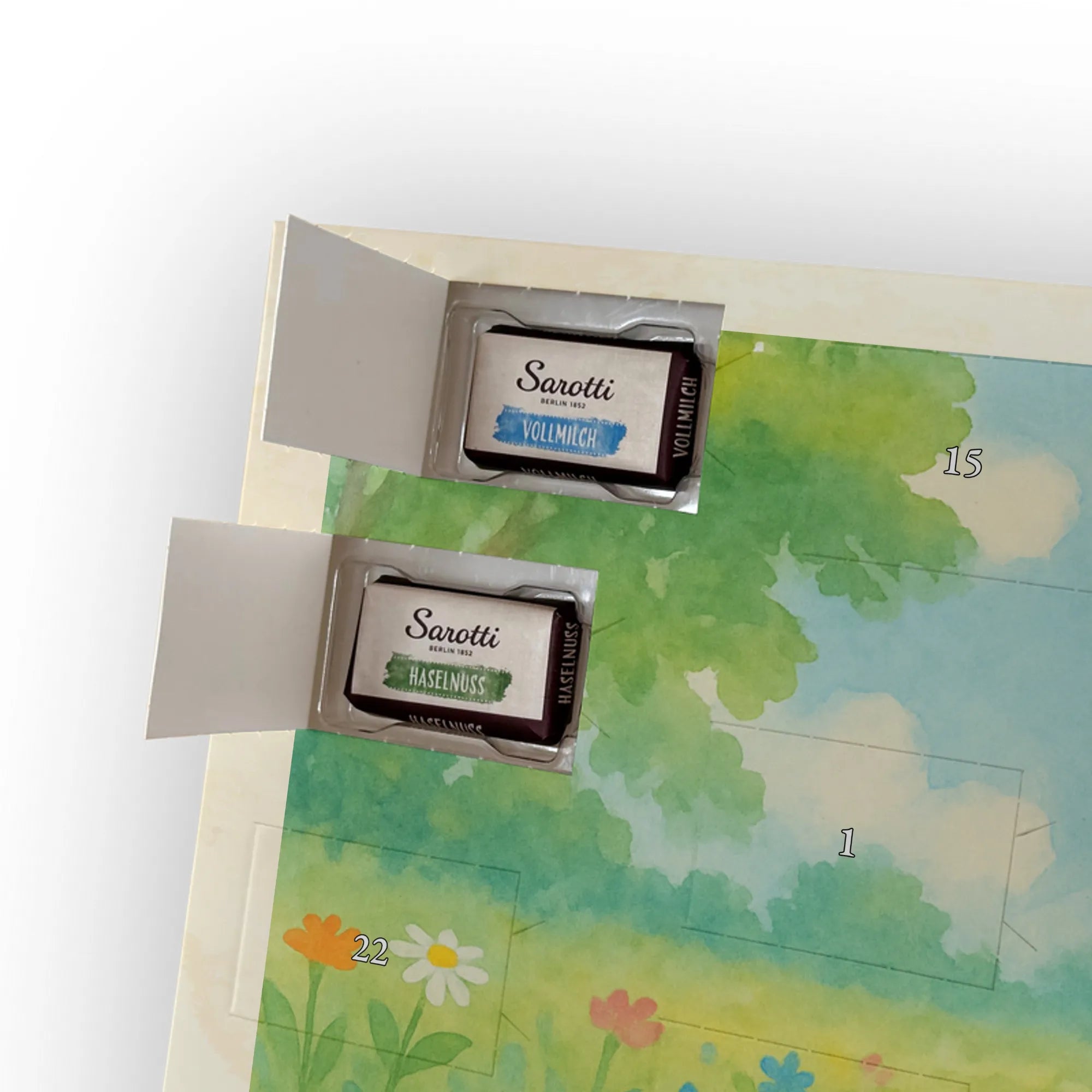 🐼 Schoko-Adventskalender: Liebevolles Design, seidenmatt, brillanter Druck – ein Hingucker.