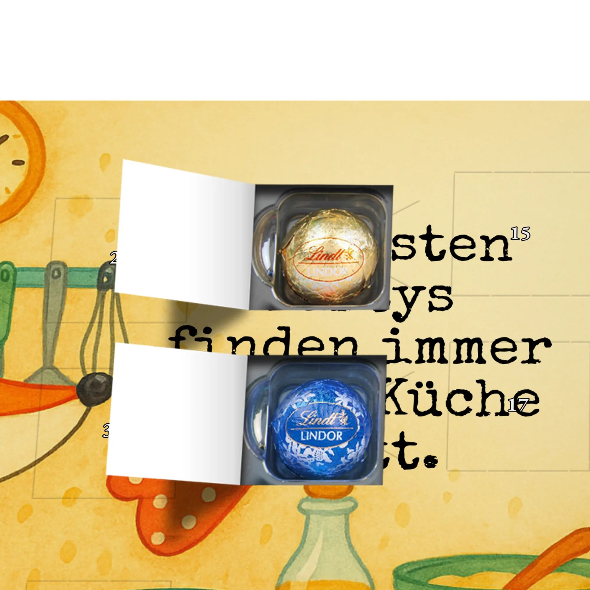 Der Schokolade Adventskalender von Mr. & Mrs. Panda ist ein liebevoll gestaltetes Highlight für deine Adventsdeko. Bedruckt mit wunderschönen Motiven & Sprüchen, nicht personalisierbar, bietet er eine charmante Optik für jeden Haushalt. Die brillante Druckqualität mit seidenmatter Oberflächenveredelung sorgt für edle Akzente, und die bedruckten Seitenflächen machen den Kalender rundum schön. Maße: 233 mm x 178 mm x 24 mm. Besonderheit: kann aufgehängt oder aufgestellt werden – richtig praktisch! Gefüllt mit Lindt Lindor: 24 einzeln verpackte Markenschokoladen Kugeln in drei köstlichen Varianten – Vollmilch, Feinherb und Weiße Schokolade – sorgen für tägliche Freuden. Zutaten: Zucker, pflanzliches Fett (Kokosnuss, Palmkern), Kakaobutter, Vollmilchpulver, Kakaomasse, Milchzucker, Magermilchpulver, Butterreinfett, Emulgator (Sojalecithin), Gerstenmalzextrakt, Aromen. Besondere Hinweise: Kann Haselnüsse und Mandeln enthalten. Ob als Geschenk oder für dich selbst – dieser Kalender ist eine wunderbare Mischung aus Design und feiner Markenschokolade.