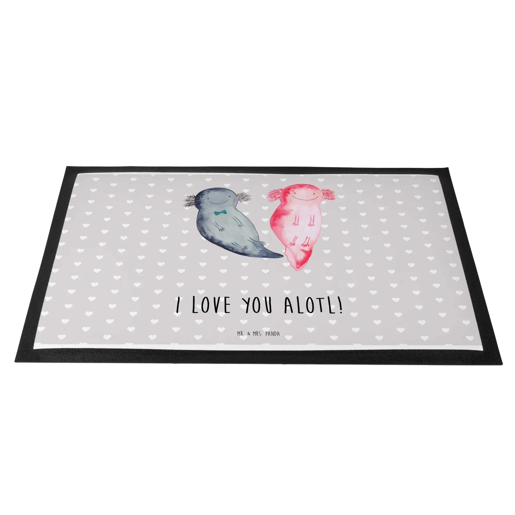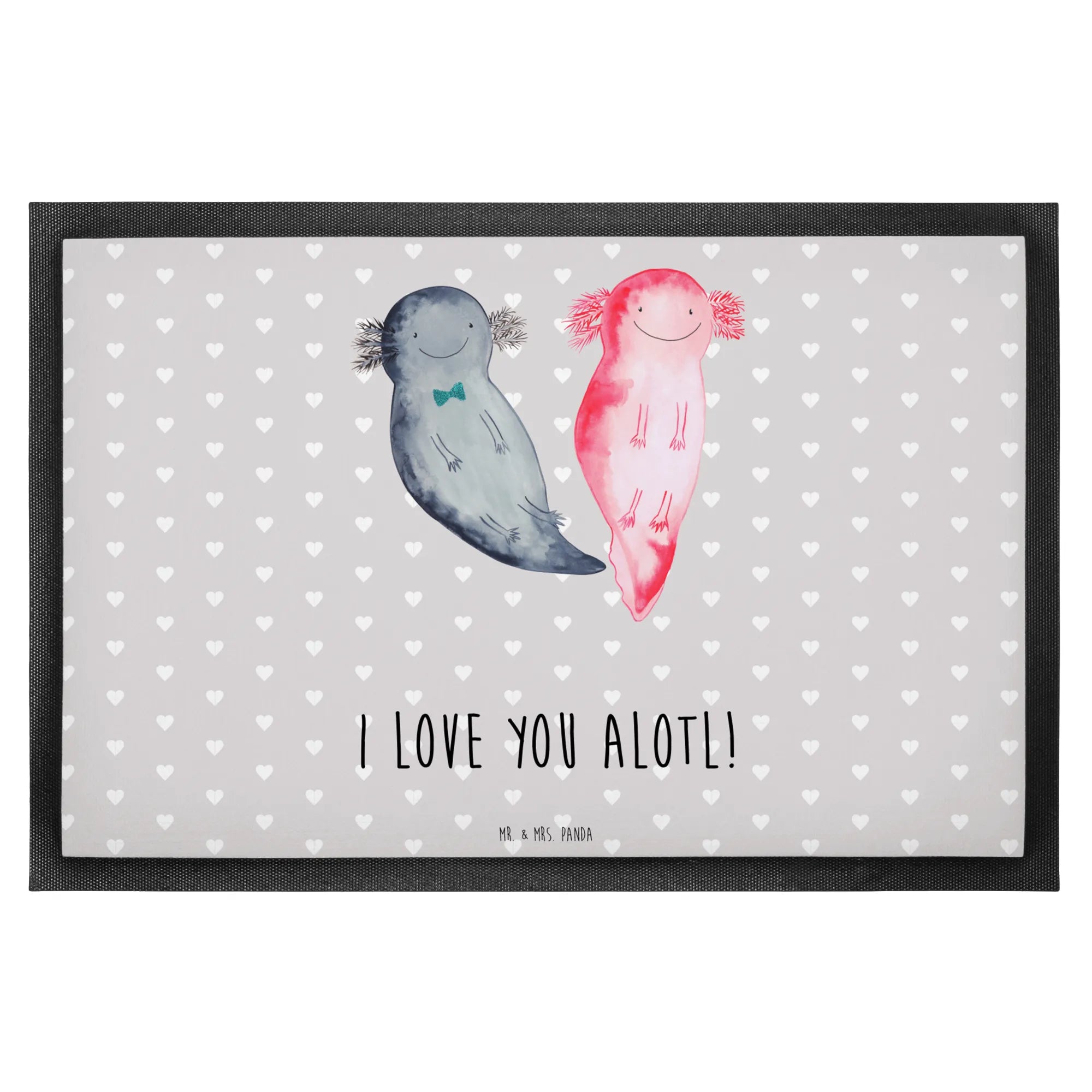 Bist du auf der Suche nach dem perfekten Geschenk für deinen Partner oder deine Partnerin? Unsere Fußmatte "Axolotl Liebe" aus der einzigartigen Liebe Kollektion von Mr. & Mrs. Panda ist genau das Richtige! Diese liebevoll gestaltete Fußmatte besticht durch zwei niedliche Axolotl, die sich verliebt anblicken und mit dem Spruch "I love you alotl!" ein Zeichen wahrer Zuneigung setzen.