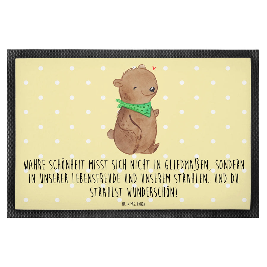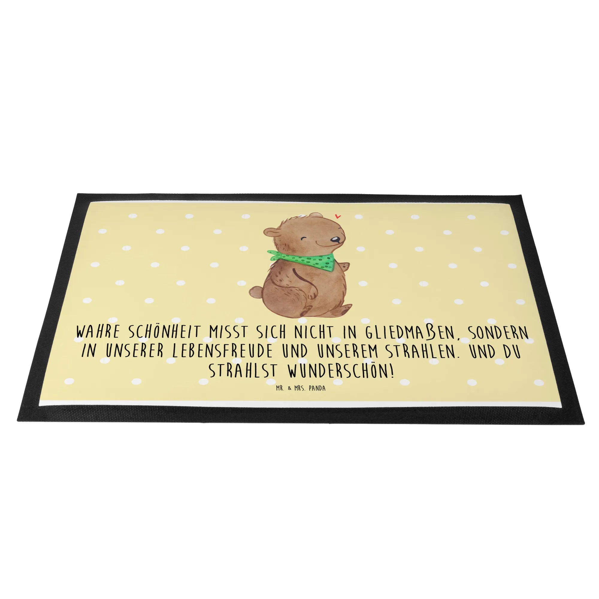 Die Mr. & Mrs. Panda Fußmatte mit dem bezaubernden Motiv des Bären mit Dysmelie ist der perfekte Weg, um ein Gefühl von Respekt und Inklusion zu vermitteln. Wenn Du auf der Suche nach einer do-it-yourself Geschenkidee oder einem durchdachten Präsent für jemanden bist, der seinen Alltag mit einem Handicap meistert, dann ist diese Fußmatte genau das Richtige.