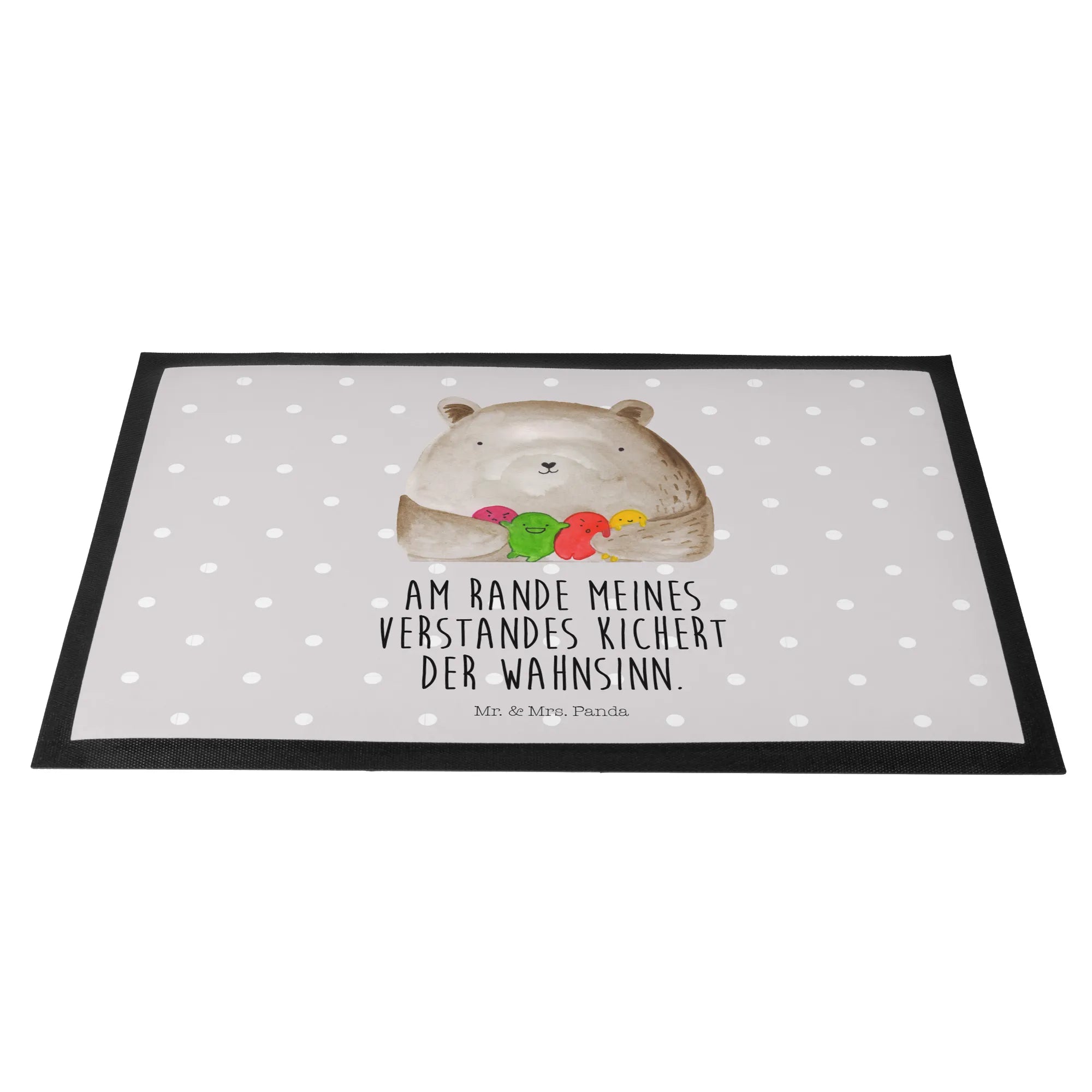 Die Fußmatte "Bär Gefühl" von Mr. & Mrs. Panda ist der perfekte Begleiter für dein Zuhause! Sie vereint Funktionalität und Design auf exquisite Weise und bringt ein Lächeln an deine Eingangstür. Mit einem süßen Bären, der bunte Kugeln in seinen Händen hält, zeigt sie nicht nur die Liebe zum Detail, sondern auch deine Herzlichkeit. Jeder, der deine Haustür betritt, wird sofort von der fröhlichen Ausstrahlung der Matte angezogen.