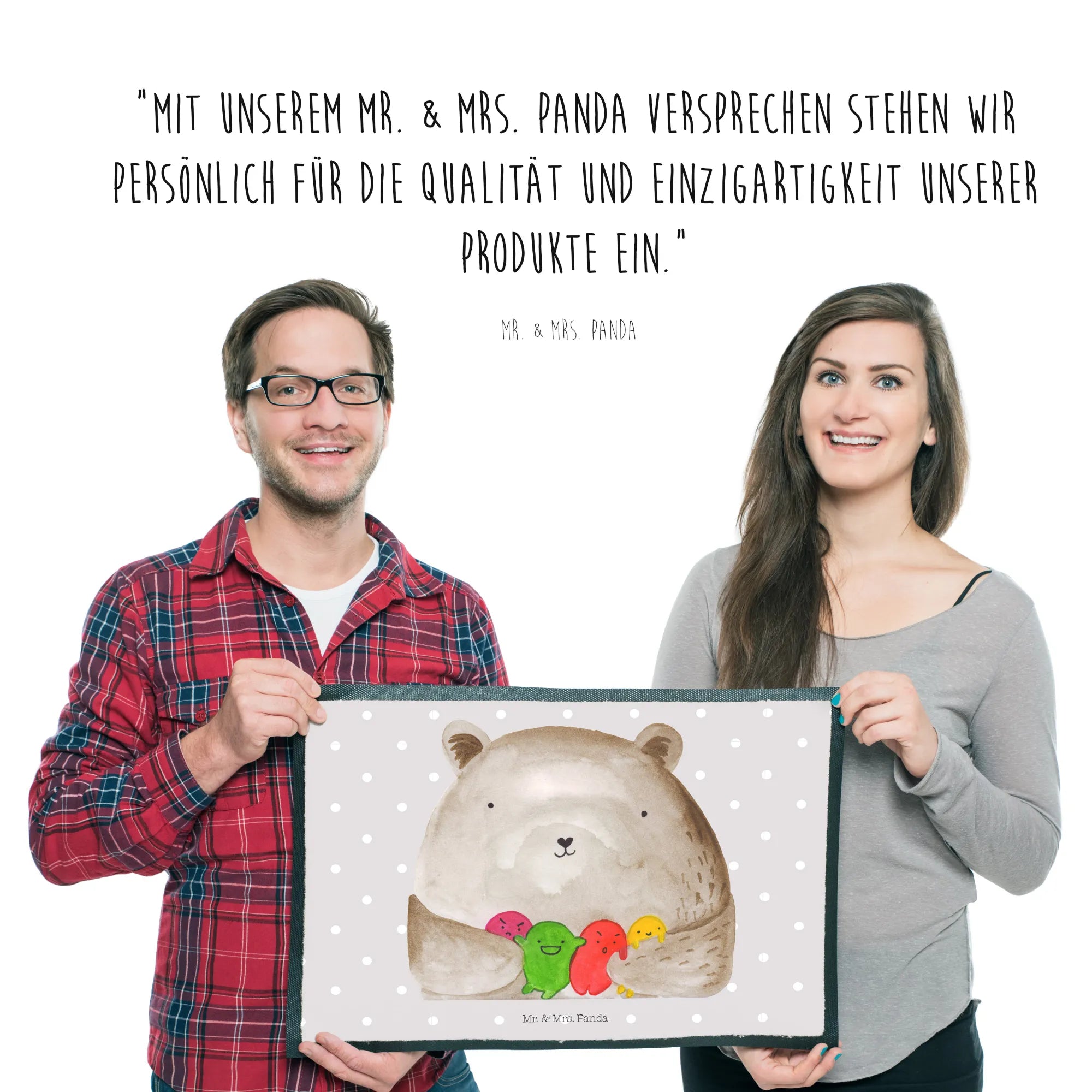 Die Fußmatte mit dem süßen Motiv "Bär Gefühl" von Mr. & Mrs. Panda ist die perfekte Geschenkidee für alle Tierliebhaber und Bärenfans. Mit ihrem einzigartigen Design bringt sie fröhliche Farben und eine Portion Emotionen in dein Zuhause. Der niedliche Bär hält bunte Kugeln in seinen Pfoten und symbolisiert viele verschiedene Gefühle wie Liebe, Freundschaft und Sehnsucht.