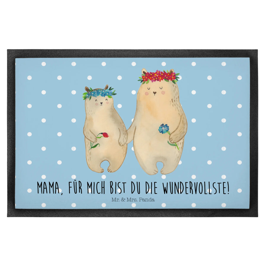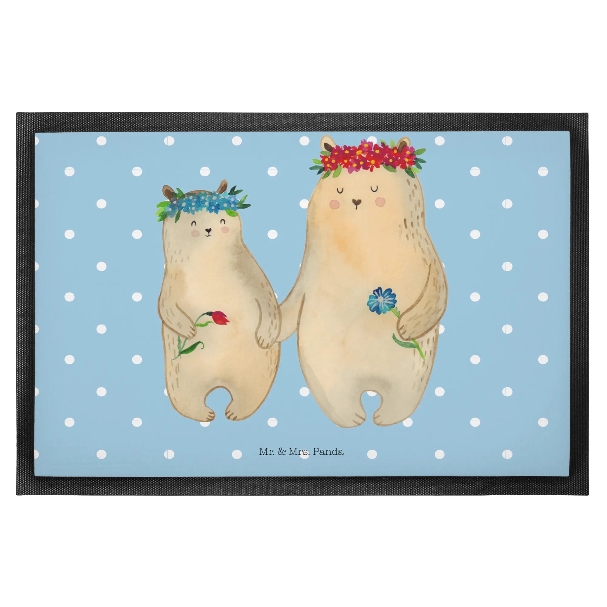 Fußmatte Bären mit Blumenkranz - 60 x 90 cm - mit Spruch - Blau Pastell