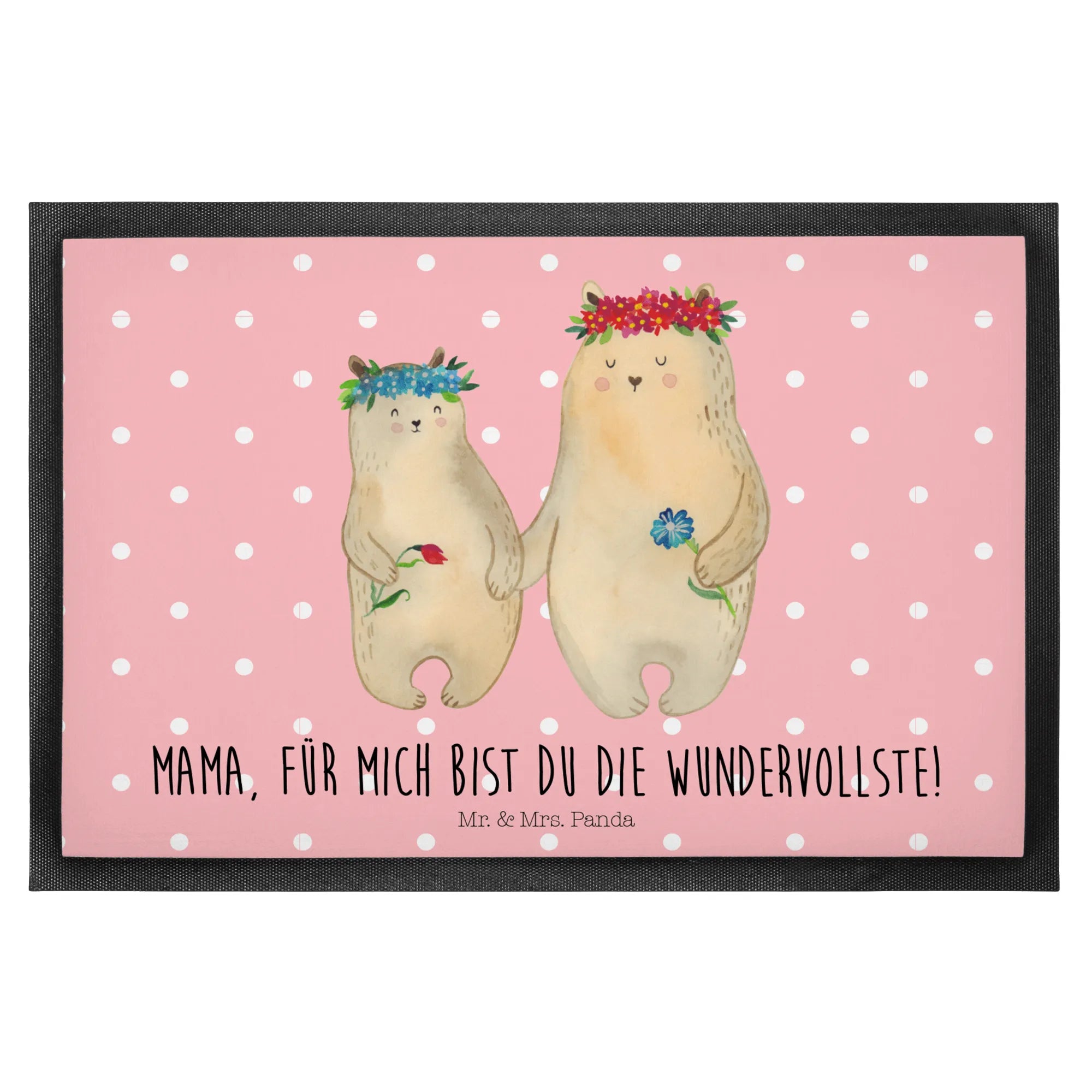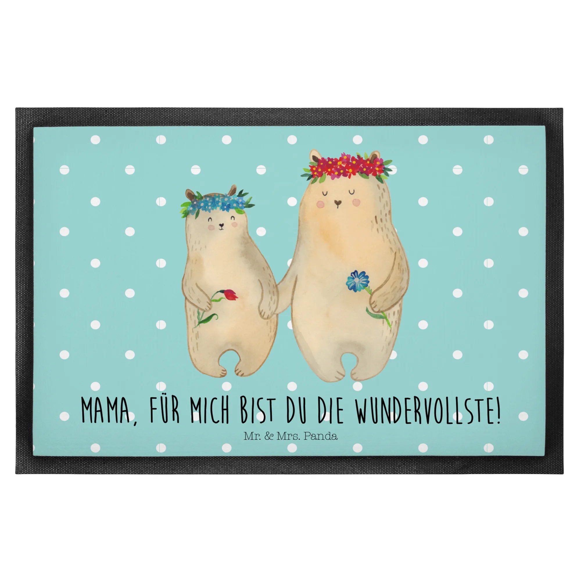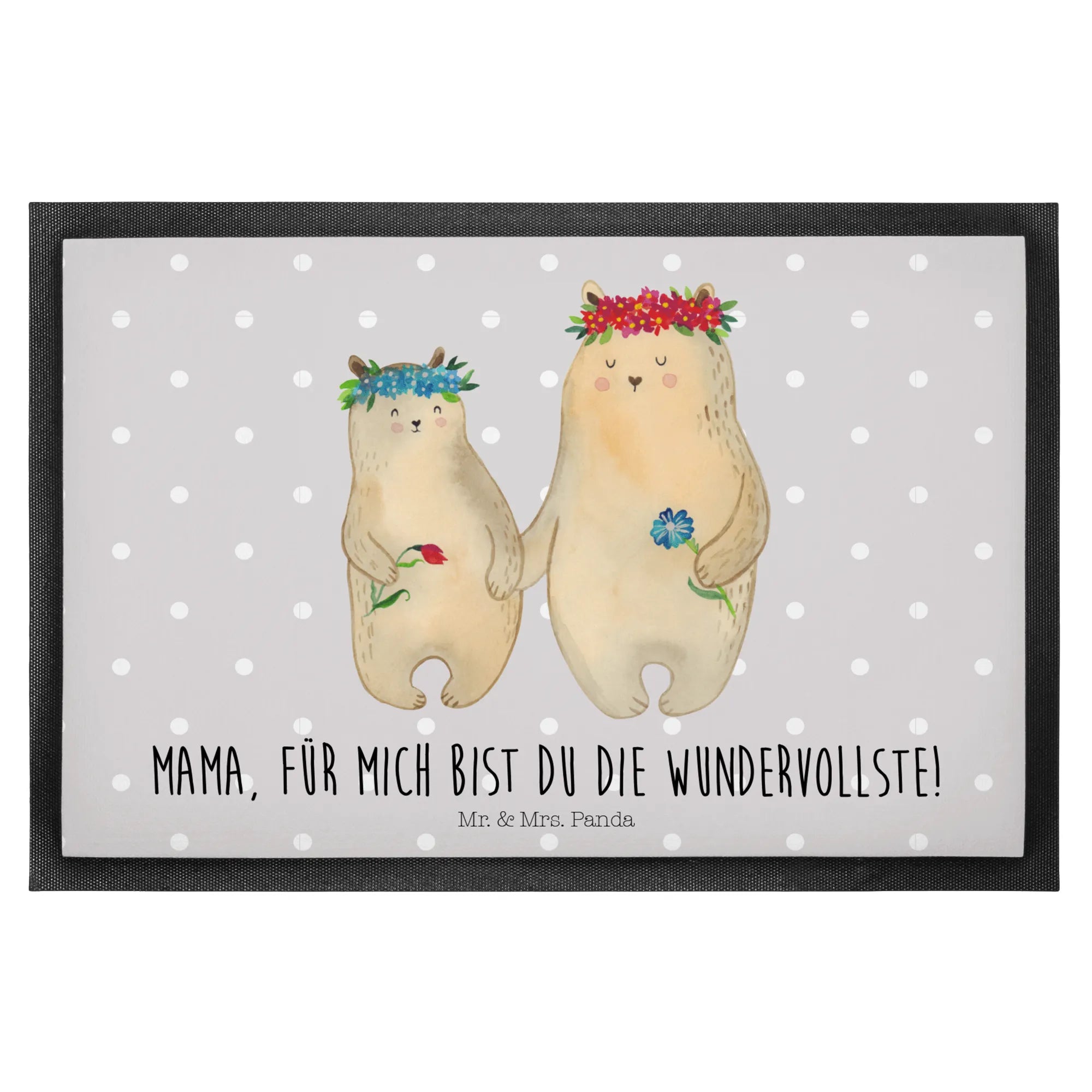 Die wunderschöne Fußmatte 'Bären mit Blumenkranz' aus der Familienkollektion von Mr. & Mrs. Panda ist das perfekte Geschenk für alle Mamas! Mit einer Größe von 50 cm x 75 cm bietet sie ausreichend Platz, um Gäste stilvoll willkommen zu heißen und gleichzeitig Schmutz von den Schuhen der Besucher fernzuhalten.