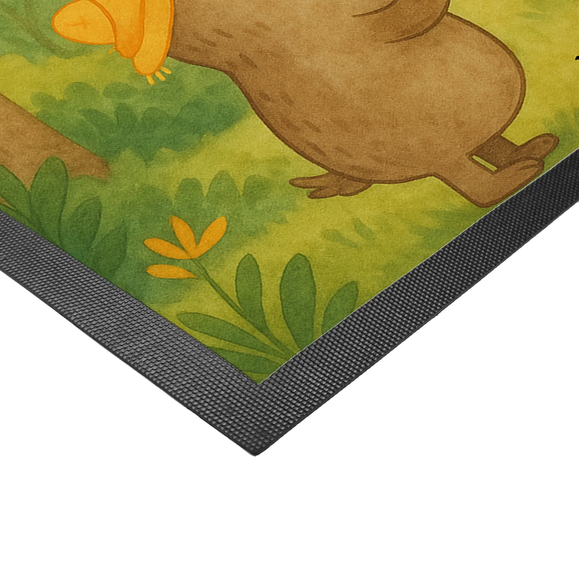 Sichere dir die bezaubernde Fußmatte von Mr. & Mrs. Panda für dein Zuhause! Diese Matte hat die Maße von 400 mm x 600 mm x 5 mm und ist aus hochwertigem und robustem Polyesterfilz gefertigt. Ihr einzigartiges Design mit witzigen Sprüchen bringt Fröhlichkeit in deinen Eingangsbereich. Die gummierte Rückseite sorgt für Rutschfestigkeit, und der breite Gummirand verhindert das Ausfransen, sodass deine Matte lange hält. Dank ihrer Widerstandsfähigkeit gegen Abrieb und Wetter ist sie für den Innen- und Außenbereich perfekt geeignet. Sie lässt sich leicht pflegen, einfach ausschütteln und absaugen oder bei Bedarf bis 30°C waschen. Diese Fußmatte ist in verschiedenen Größen erhältlich, um perfekt zu deinem Raum zu passen!