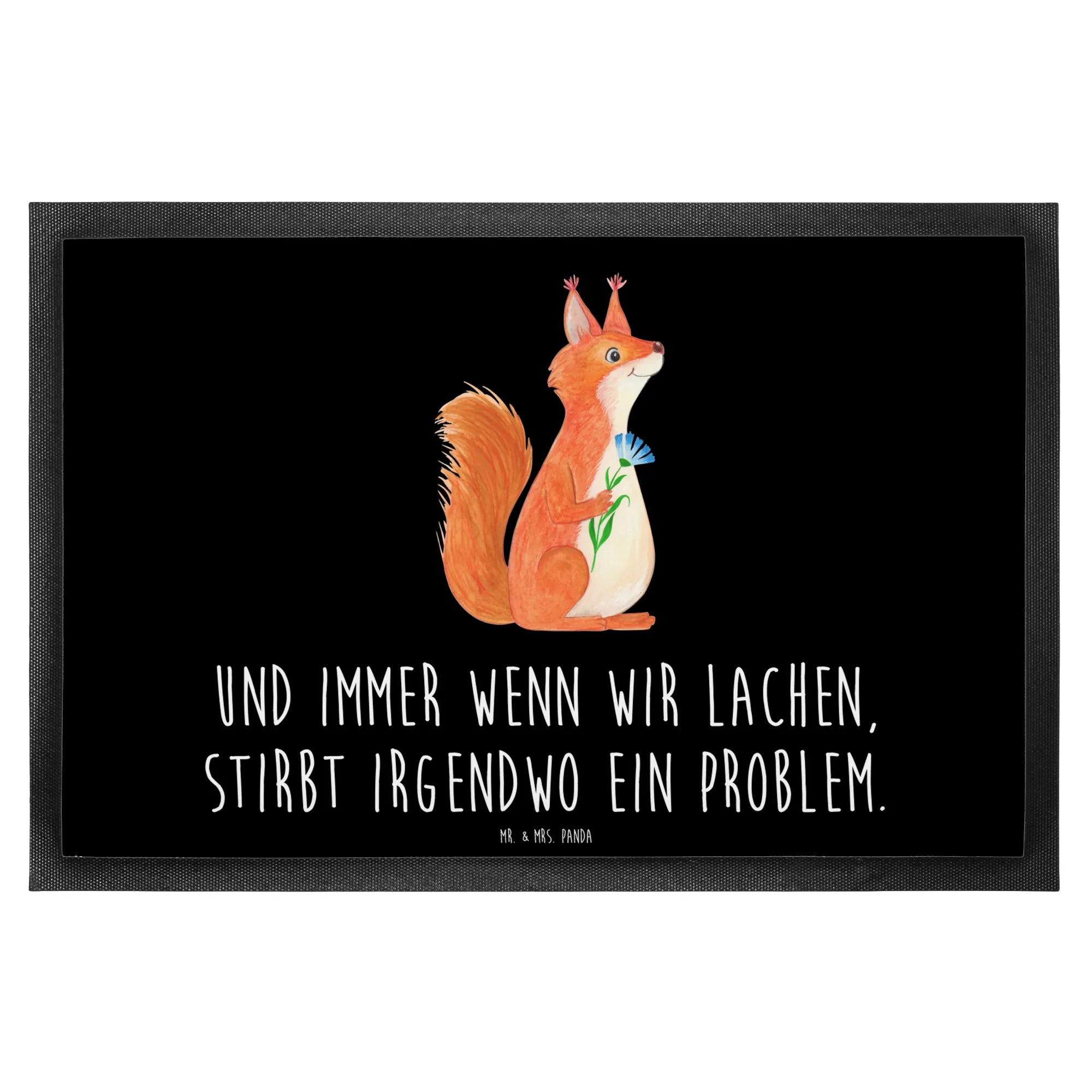 Fußmatte Eichhörnchen Blume - 60 x 90 cm - mit Spruch - Schwarz