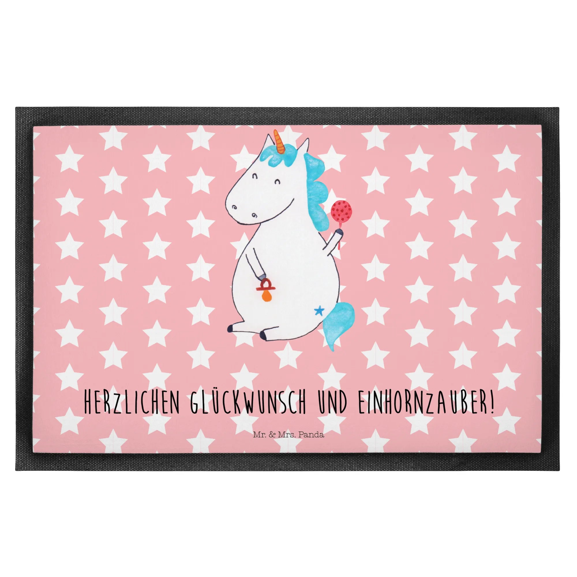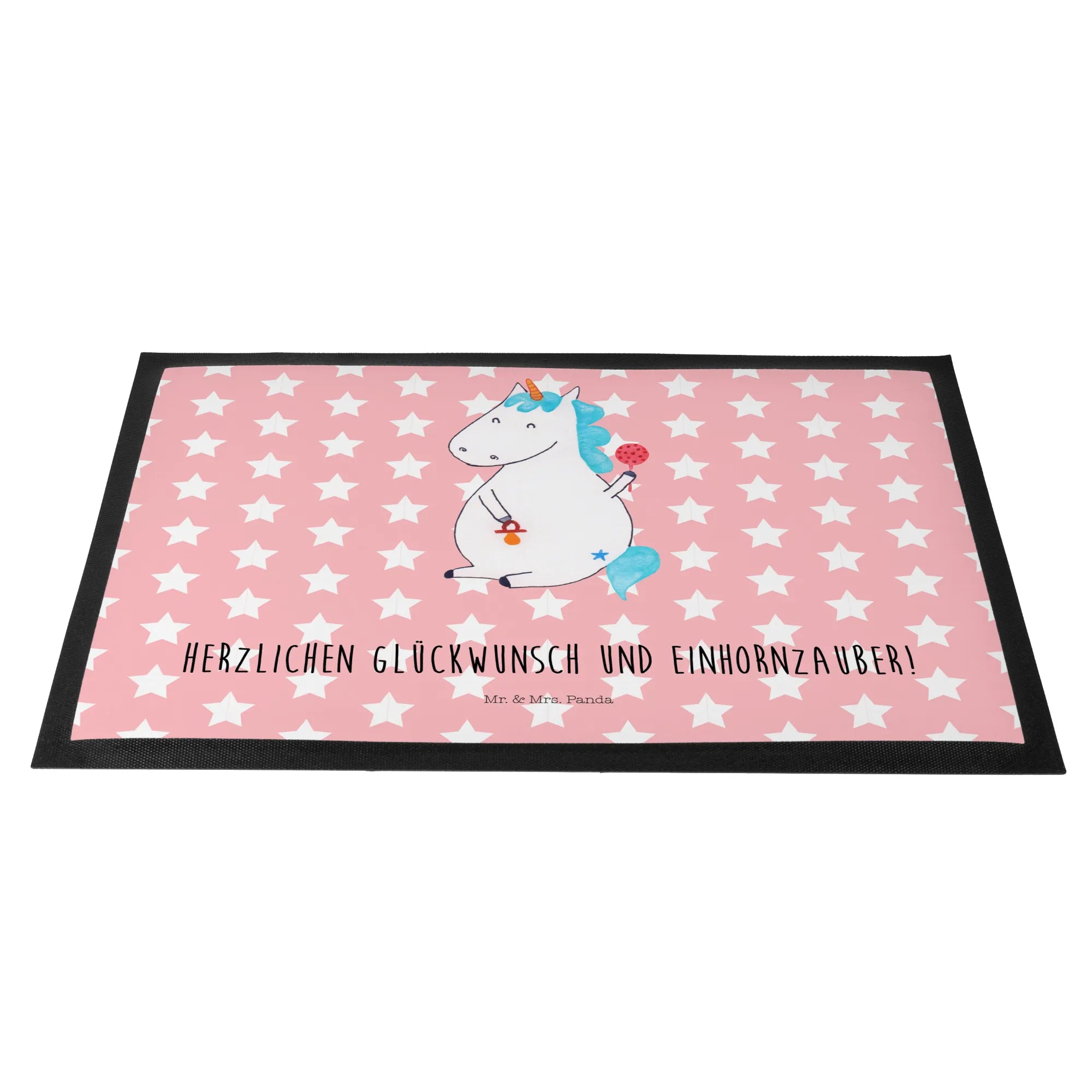 Die Fußmatte "Einhorn Baby" von Mr. & Mrs. Panda ist das perfekte Geschenk für alle frisch gebackenen Eltern und deren kleinen Schatz! Mit einem zauberhaften Einhorn-Motiv und dem Spruch "Herzlichen Glückwunsch und Einhornzauber!" sorgt sie für ein Lächeln beim Betreten der Wohnung und bringt mehr Freude und Farbe in den Eingangsbereich.