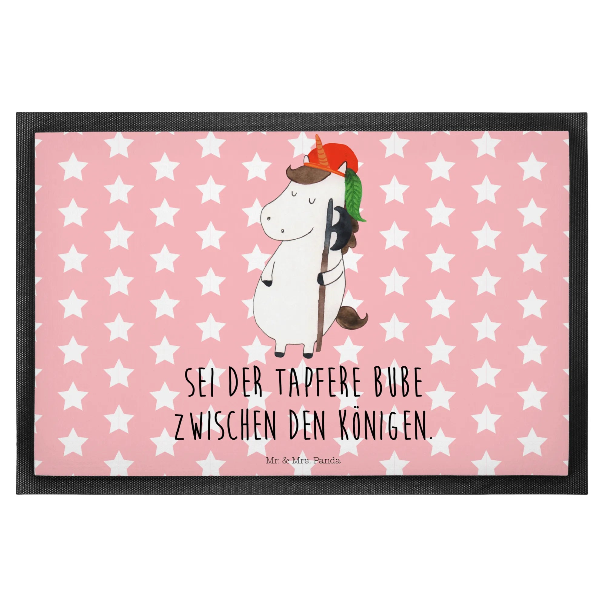 Entdecke die zauberhafte Fußmatte mit dem Motiv "Einhorn Bube" aus der exklusiven Einhorn-Kollektion von Mr. & Mrs. Panda!