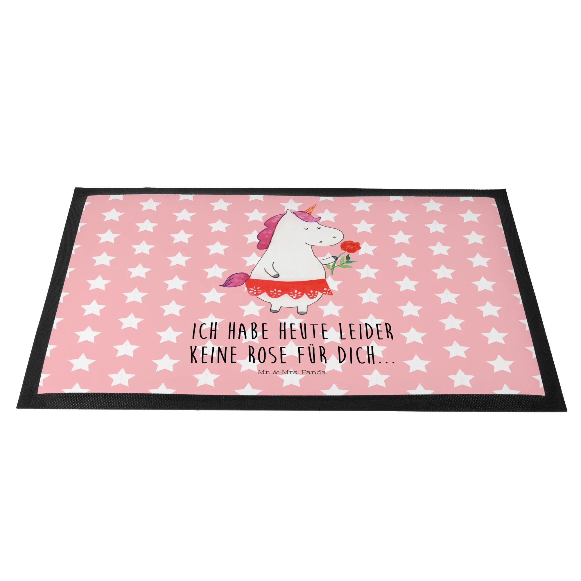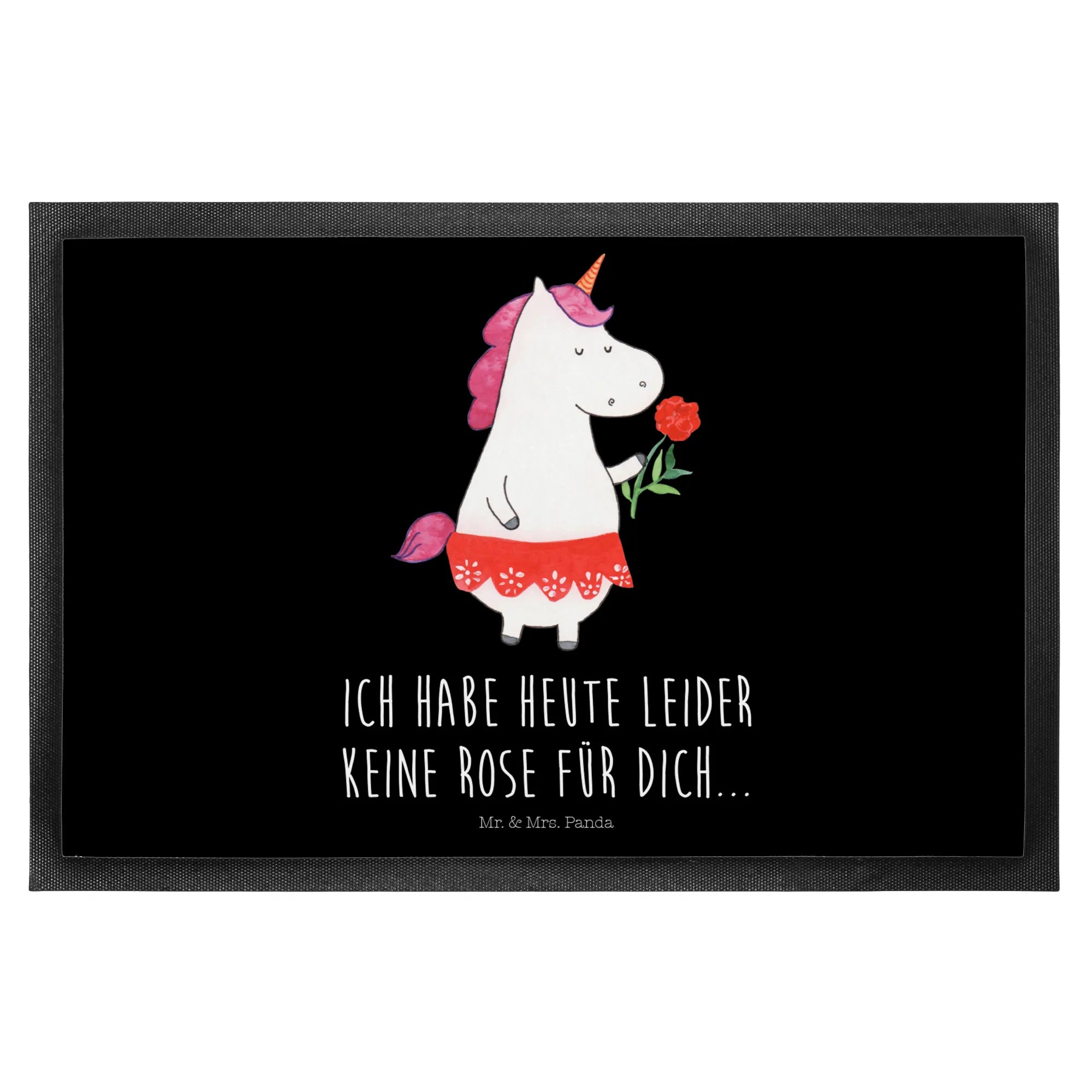Die Fußmatte "Einhorn Dame" aus der Einhorn-Kollektion von Mr. & Mrs. Panda ist der perfekte Hingucker für jeden Eingangsbereich. Diese wunderschöne und hochfunktionale Fußmatte vereint niedlichen Charme mit praktischen Eigenschaften. Mit ihren handgezeichneten Motiven und dem liebevollen Spruch "Ich habe heute leider keine Rose für dich" bringt sie nicht nur dein Zuhause zum Strahlen, sondern sorgt auch dafür, dass dein Eingangsbereich stets sauber bleibt.