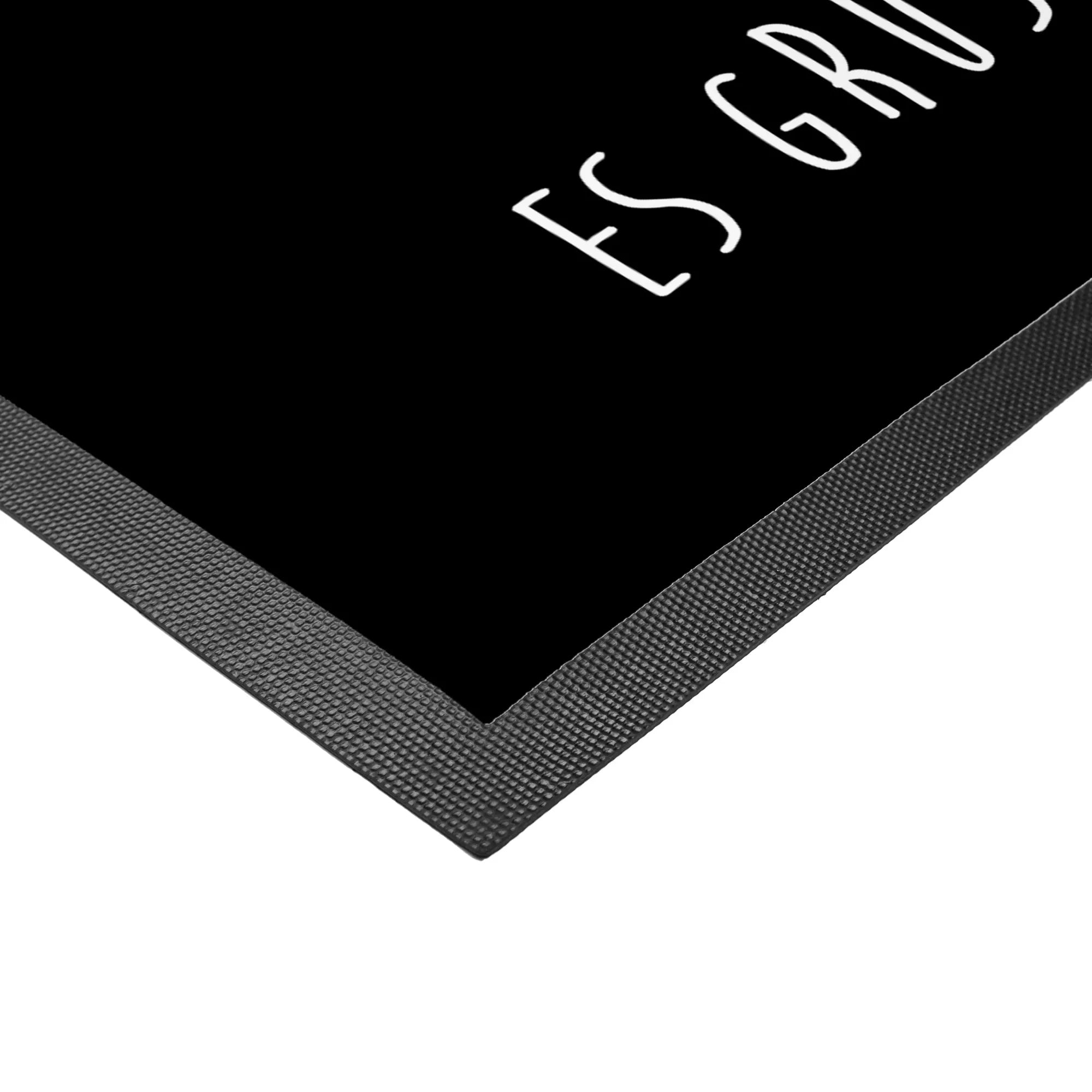Die Maße von 60 x 90 cm sind ideal, um beim Eintreten in die Wohnung Schmutz und Nässe festzuhalten. Hergestellt aus robustem Polyesterfilz mit einem rutschfesten Gummirücken, bleibt die Matte dort, wo sie hingehört. Der breite Gummirand verhindert das Ausfransen und sorgt für zusätzlichen Halt. Zudem ist die Fußmatte abriebfest und wetterbeständig – perfekt für jeden Eingangsbereich, ob drinnen oder draußen!
