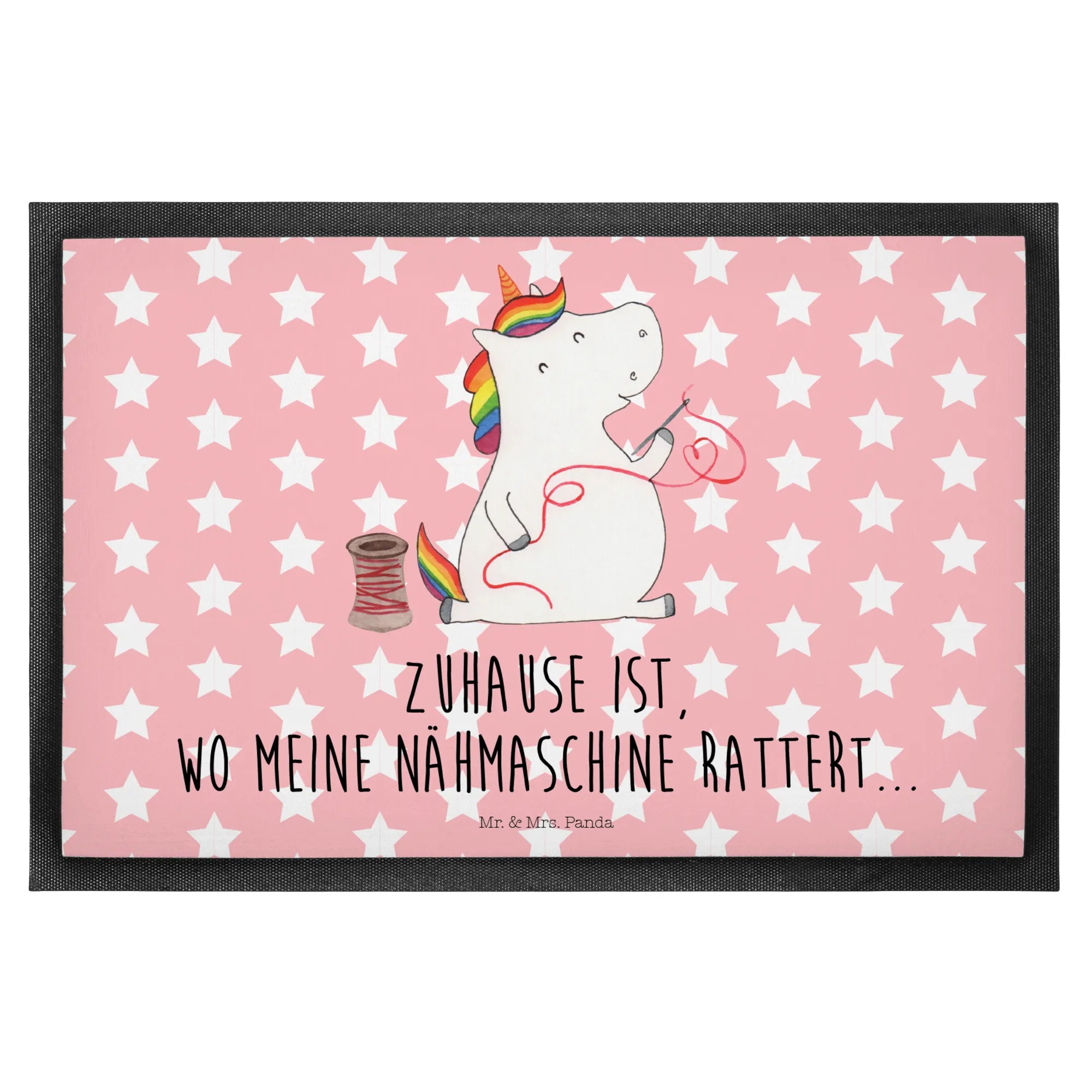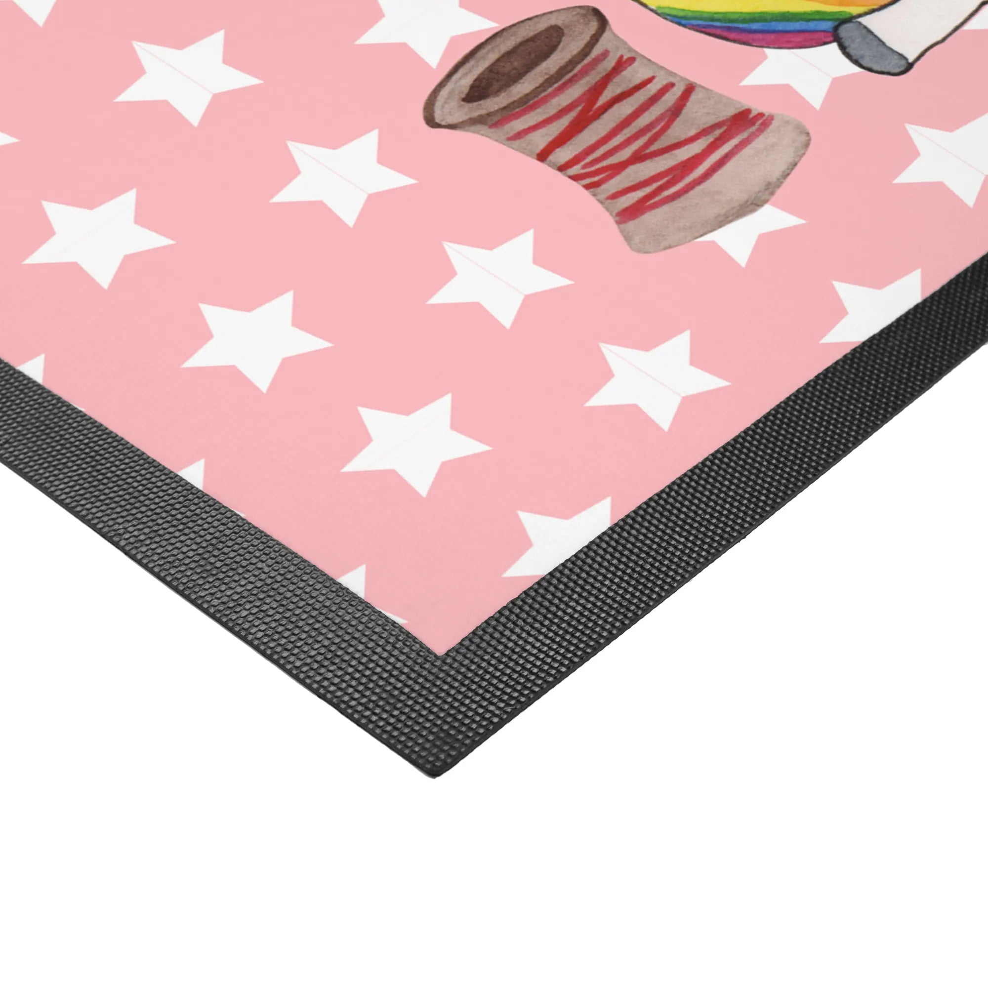Die Fußmatte "Einhorn Näherin" von Mr. & Mrs. Panda ist der perfekte Begleiter für alle kreativen Seelen, die das Nähen, Stricken oder Häkeln lieben! Mit dem süßen Einhorn-Motiv und dem liebevoll gestalteten Spruch "Zuhause ist, wo meine Nähmaschine rattert" bringt diese Fußmatte nicht nur Farbe in deinen Eingangsbereich, sondern auch ein Stück herzerwärmende Kreativität.