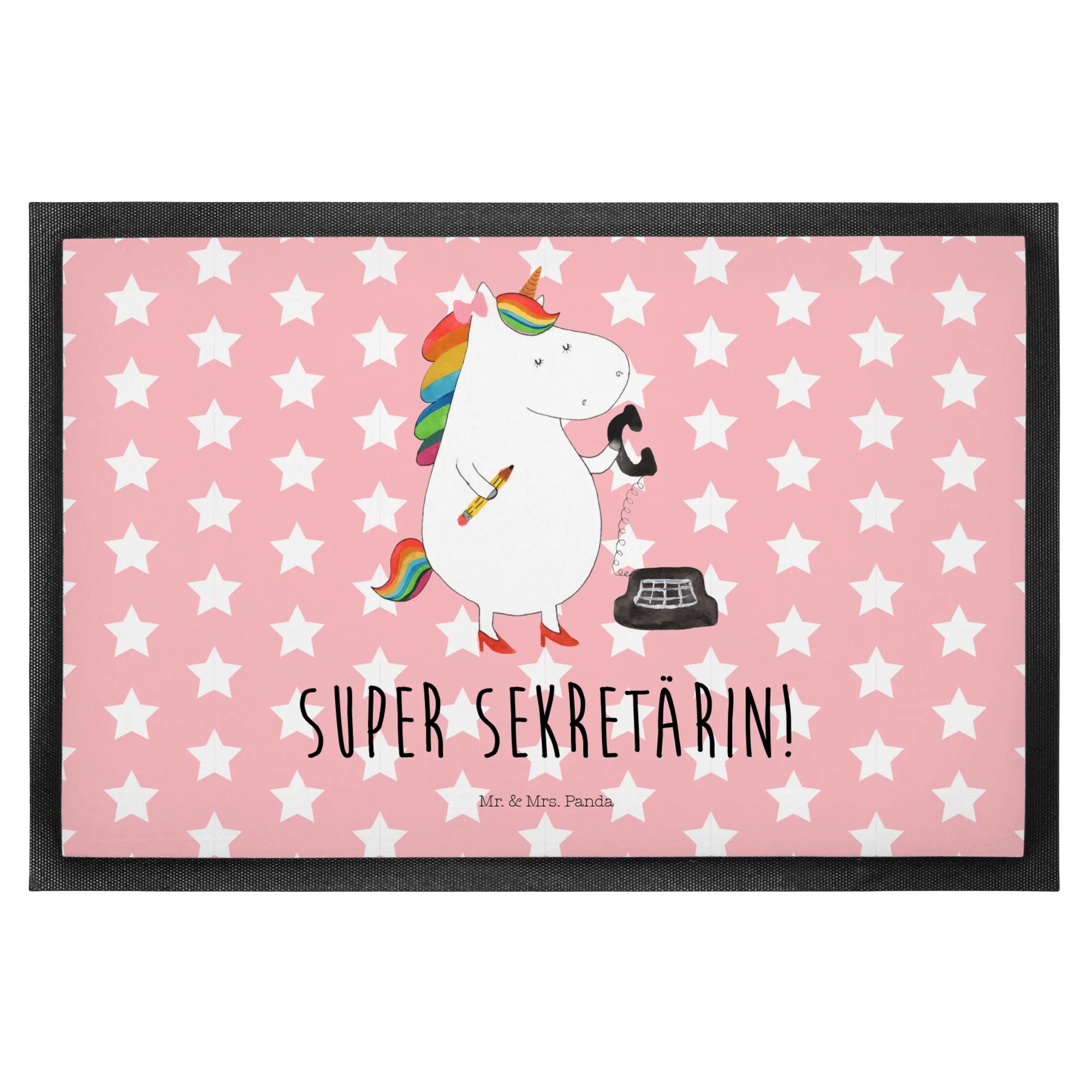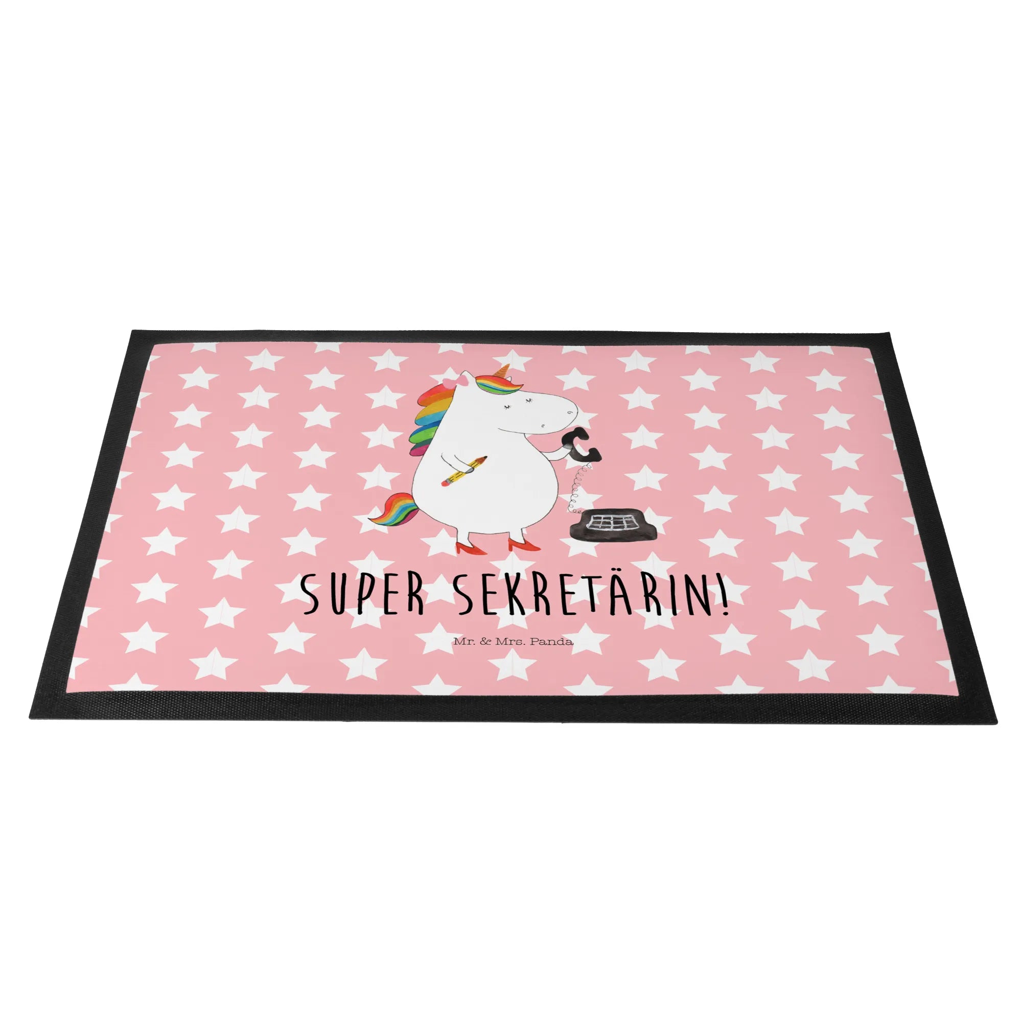 Du suchst nach dem perfekten Geschenk für eine liebe Freundin oder Kollegin? Die Fußmatte "Einhorn Sekretärin" aus der Einhorn-Kollektion von Mr. & Mrs. Panda ist genau das Richtige! Diese wunderschöne und hochfunktionale Fußmatte bringt nicht nur Freude ins Zuhause, sondern sorgt auch dafür, dass der Eingangsbereich einladend und sauber bleibt. Mit der Aufschrift "Super Sekretärin!" wird jedes Mal ein Lächeln ins Gesicht gezaubert, wenn du nach Hause kommst oder Besuch empfängst.