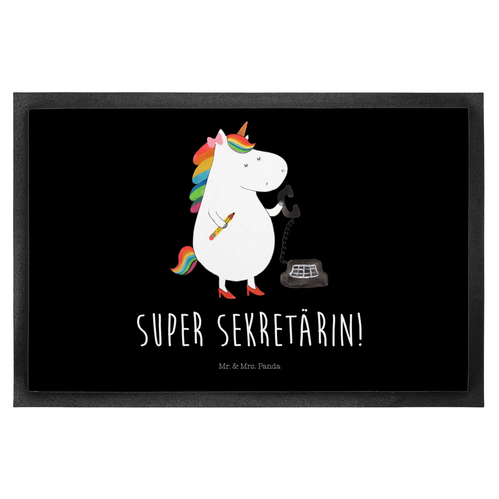 Diese wunderschöne und hochfunktionale Fußmatte ist nicht nur ein praktischer Schmutzfänger, sondern auch ein echter Blickfang. Mit ihrem liebevoll handgezeichneten Einhorn-Motiv, das eine Sekretärin darstellt, bringt sie jeden zum Schmunzeln.