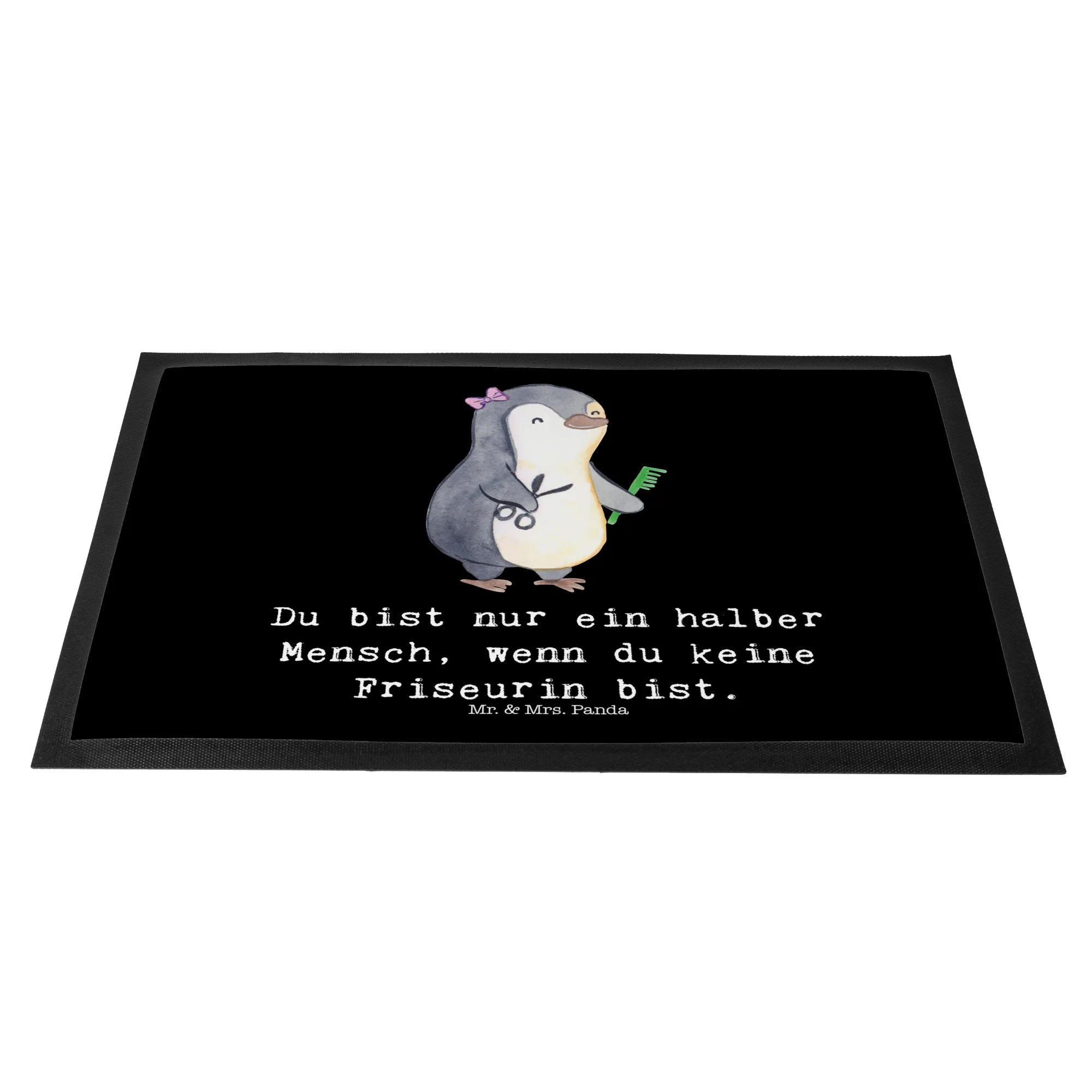 Die Fußmatte "Friseurin mit Herz" von Mr. & Mrs. Panda ist das perfekte Geschenk für alle Frisörinnen und Haarstylistinnen, die mit Leidenschaft und Kreativität ihren Beruf ausüben. Ob zum Berufsabschluss, als Dankeschön für einen geschätzten Kollegen oder einfach nur als liebevolles Geschenk: Diese Fußmatte bringt Freude und Charakter in jeden Friseursalon oder das eigene Zuhause. Mit dem liebevoll gestalteten Motiv, das eine Pinguindame zeigt, die sowohl eine Schere als auch einen Kamm in der Hand hält, wird die Fußmatte zum echten Hingucker. Der Spruch "Du bist nur ein halber Mensch, wenn du keine Friseurin bist" zaubert jedem, der sie sieht, ein Lächeln ins Gesicht.