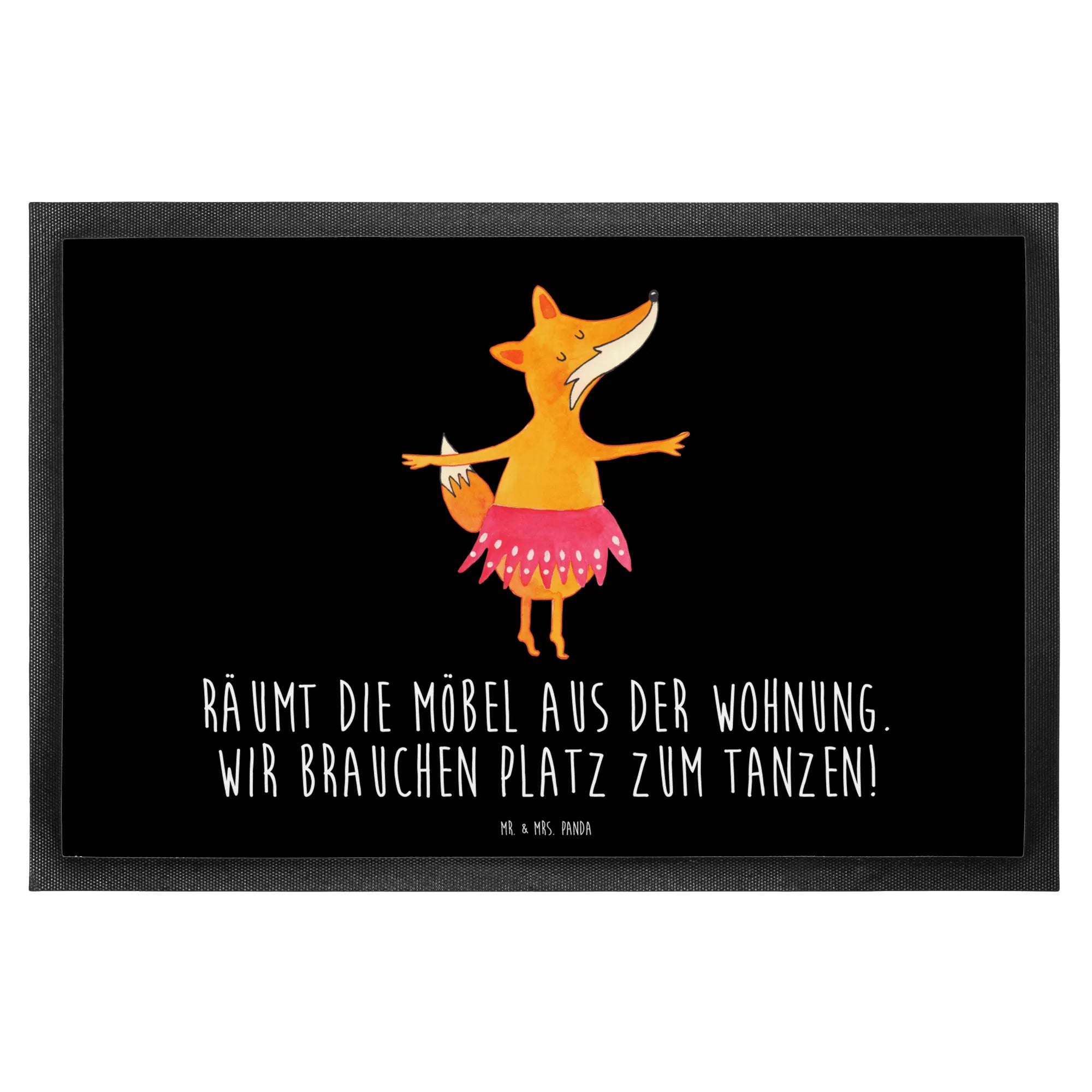 Mit einem fröhlichen Fuchs, der als Ballerina elegant tanzt, bringt diese Matte nicht nur Freude, sondern auch ein Stück Kunst in deinen Eingangsbereich. Der besondere Slogan 'Räumt die Möbel aus der Wohnung. Wir brauchen Platz zum Tanzen!' zaubert jedem Besucher ein Lächeln ins Gesicht und lädt direkt zum Tanzen ein.