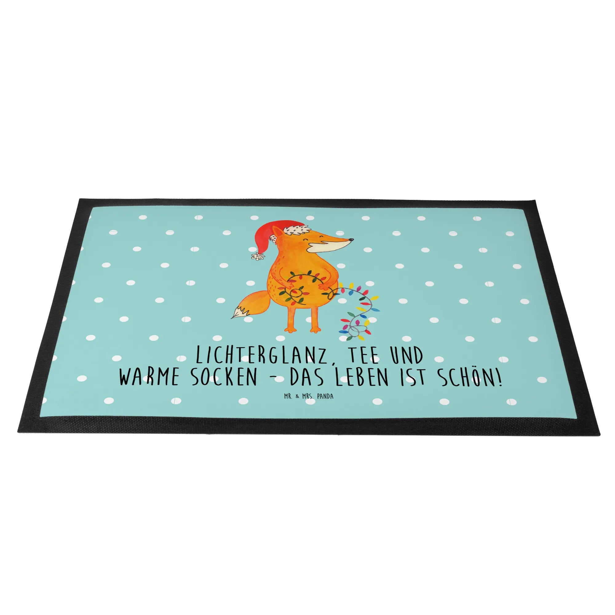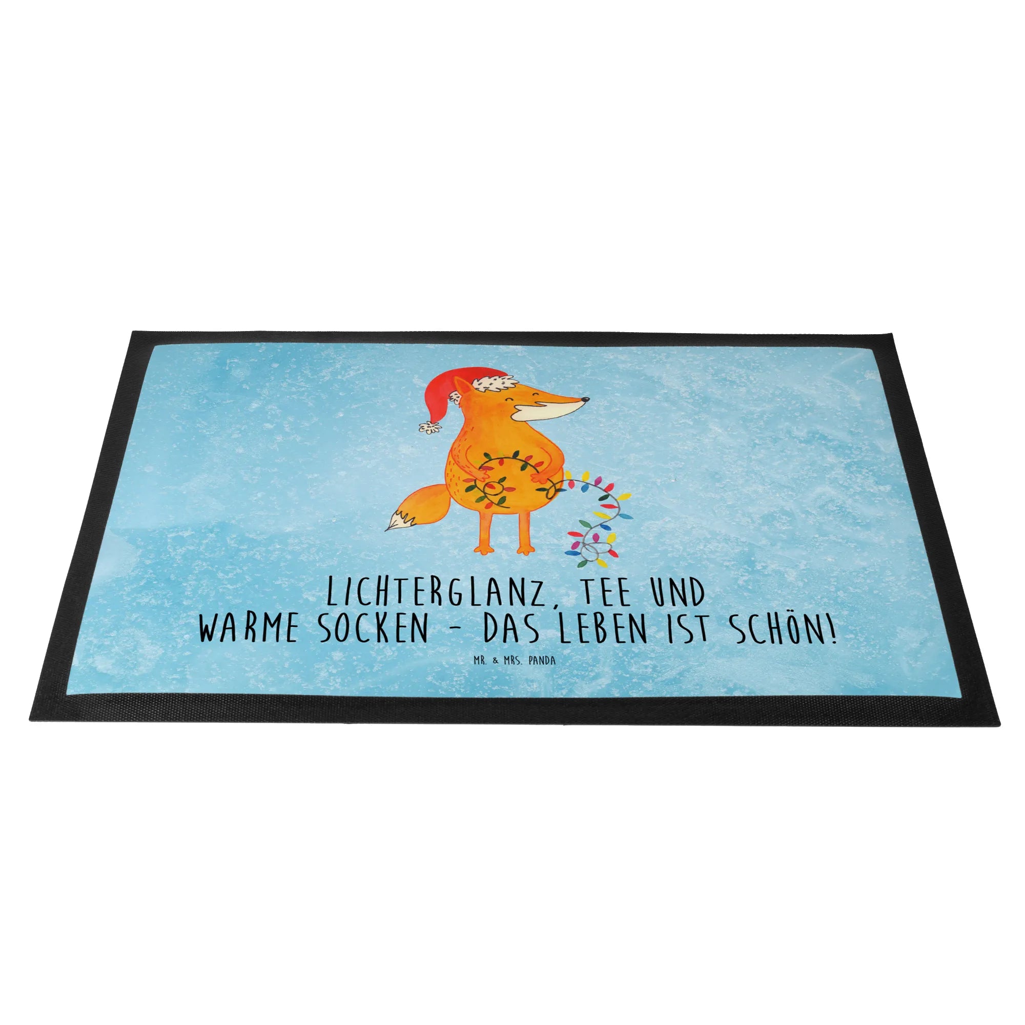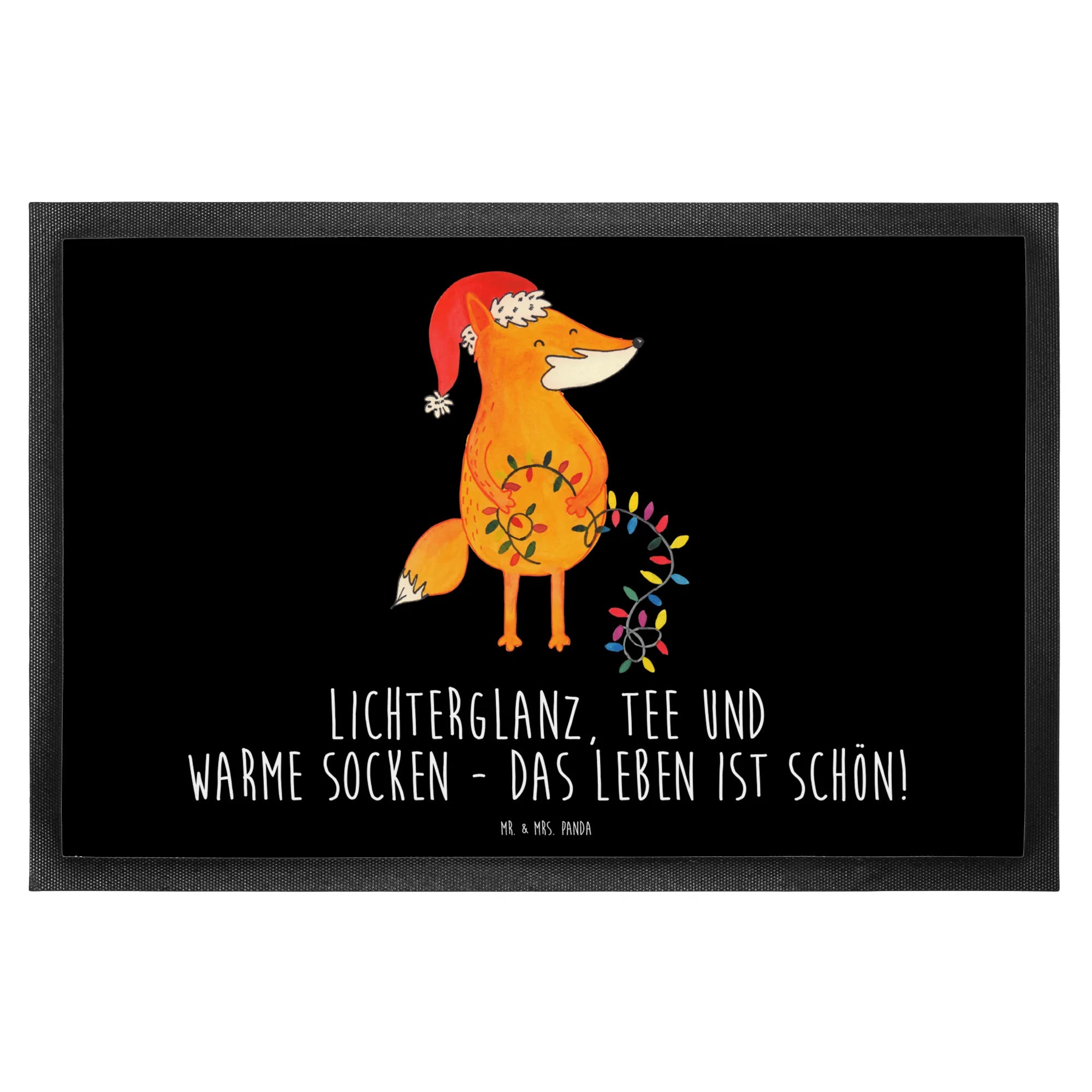 Die Winter Kollektion von Mr. & Mrs. Panda freut sich darauf, dir fröhliche und einladende Motive zu bieten, die perfekt zur kalten Jahreszeit passen. Lass dich von der heiteren Ausstrahlung des Fuchses mitreißen und genieße die besinnliche Zeit mit Freunden und Familie. Der Slogan „Lichterglanz, Tee und warme Socken – das Leben ist schön!“ entspricht genau dem Gefühl, das wir alle zur Weihnachtszeit erleben. Mach dein Zuhause noch einladender und gemütlicher mit dieser wunderschönen und hochfunktionalen Fußmatte. Sie ist das i-Tüpfelchen für dein winterliches Heim und sorgt für Sauberkeit und Freude zugleich! Nutze sie als Schmutzfänger an der Haustür und sag dem Winter mit einem Lächeln willkommen! Unterstütze den Zauber der winterlichen Feiertage mit Stil und Humor. Lass die winterlichen Monate mit jedem Schritt shinier und cozy werden!