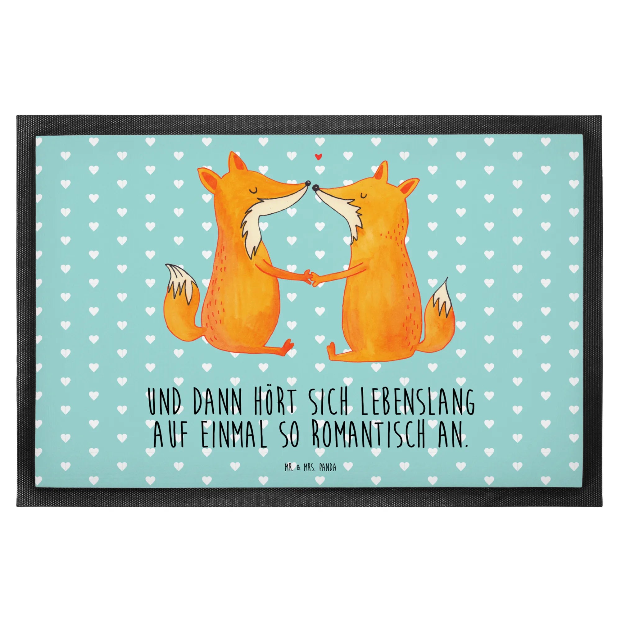 Die Fußmatte "Füchse Liebe" von Mr. & Mrs. Panda ist nicht nur ein praktisches Accessoire, sondern auch ein Ausdruck von Liebe und Romantik. Mit einem zauberhaften Motiv von zwei niedlichen Füchsen, die Hand in Hand sitzen, versprüht diese Fußmatte einen Hauch von Magie und Glück. Diese besondere Schmutzmatte ist ideal für all jene, die das Besondere im Alltag lieben und ihren Eingangsbereich stilvoll gestalten möchten.