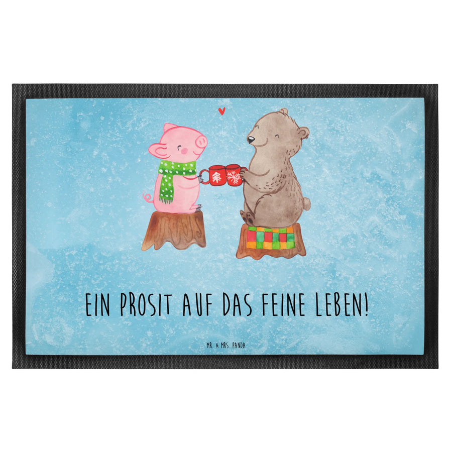 Die Fußmatte "Glühschwein Sause" aus der Winter Kollektion von Mr. & Mrs. Panda ist das perfekte Geschenk für die besinnliche Weihnachtszeit! Mit einem niedlichen Motiv, das einen Bären und ein Schweinchen zeigt, die liebenswert mit einer Tasse anstoßen und sich "Alles Gute" wünschen, bringt diese Matte Freude und Wärme in jedes Zuhause.