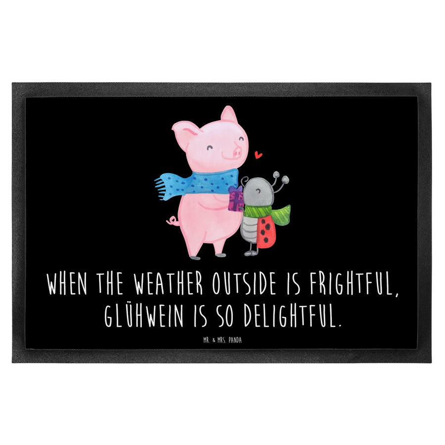 Die zauberhafte Fußmatte Glühschwein Smörle aus der Winter Kollektion von Mr. & Mrs. Panda ist die perfekte Ergänzung für dein Zuhause in der kalten Jahreszeit. Mit einem handgezeichneten Glühschwein, das einen luftigen blauen Schal trägt, und dem niedlichen Marienkäfer Smörle, der stolz ein Geschenk überbringt, verbreitet diese Fußmatte eine herzliche Atmosphäre, die Gäste gleich beim Eintreten willkommen heißt. Der Spruch "When the weather outside is frightful, Glühwein is so delightful" macht die Matte nicht nur zu einem praktischen Schmutzfänger, sondern auch zu einem liebevollen Blickfang in deinem Eingangsbereich.