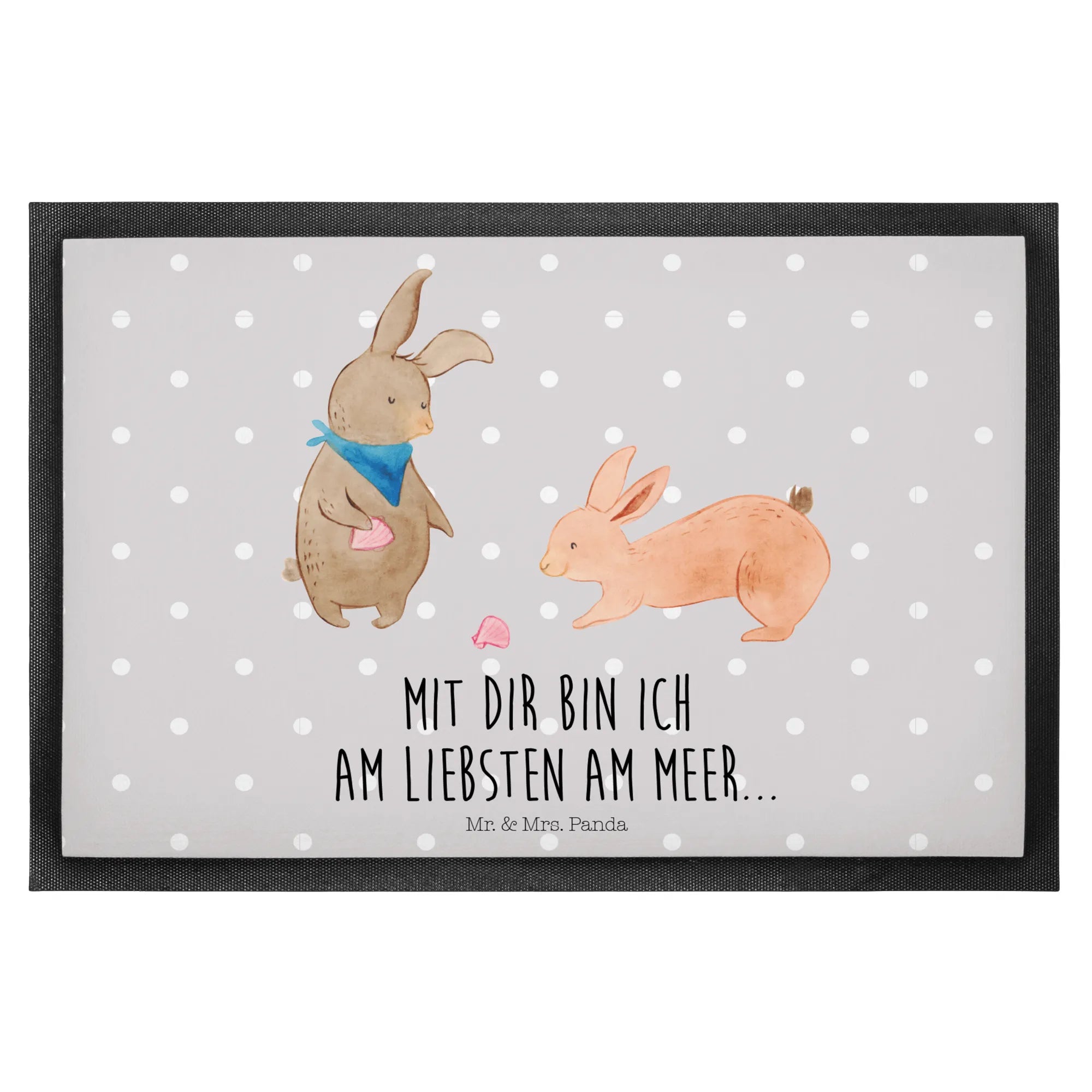 Fußmatte Hasen Muschel - 60 x 90 cm - mit Spruch - Grau Pastell