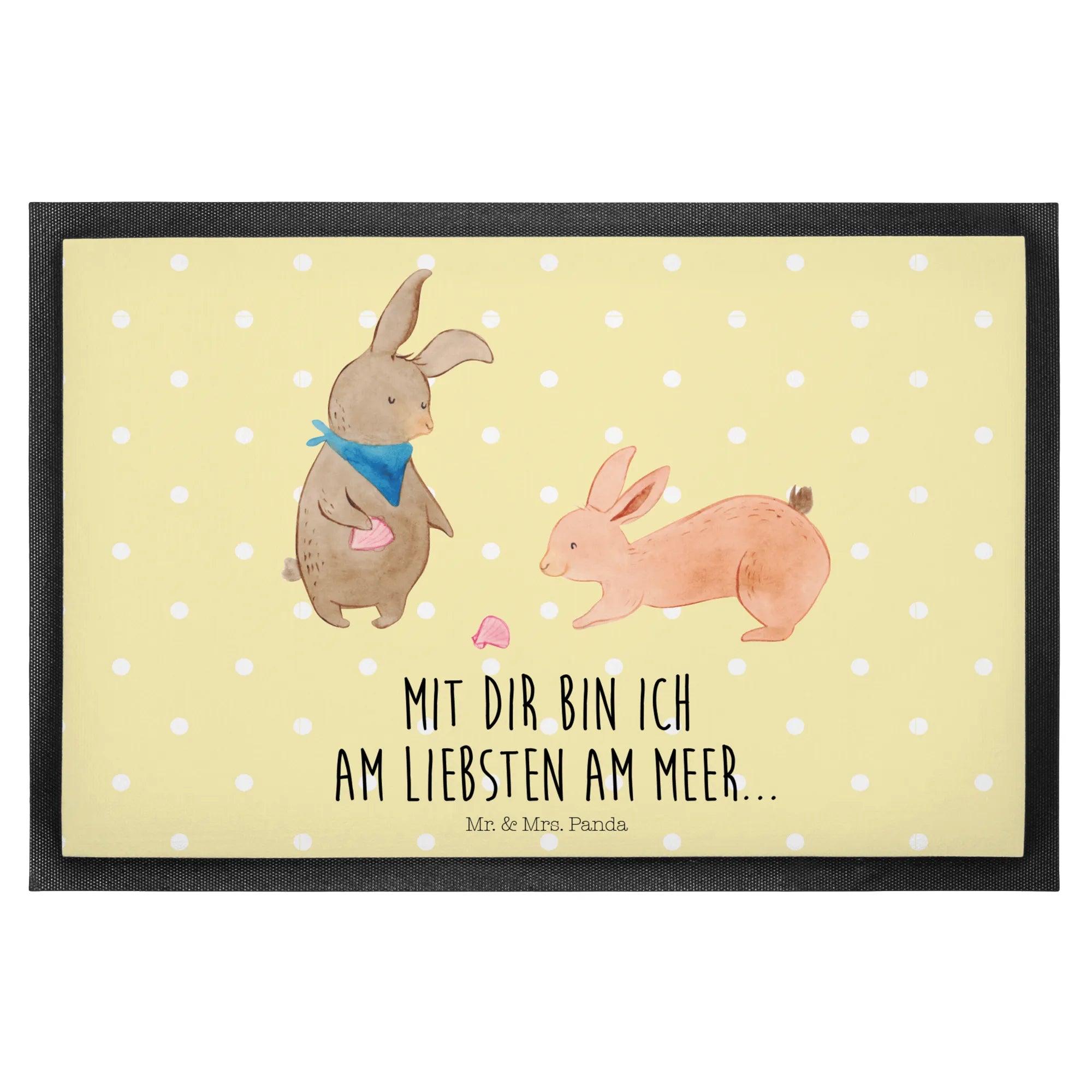 Die bezaubernde Fußmatte "Hasen Muschel" von Mr. & Mrs. Panda ist das perfekte Geschenk für Familie und Freunde, die das Meer und die fröhlichen Momente, die es mit sich bringt, lieben. Mit dem liebevollen Slogan "Mit dir bin ich am liebsten am Meer..." bringt diese Schmutzmatte ein Stückchen Urlaubsfeeling in dein Zuhause.