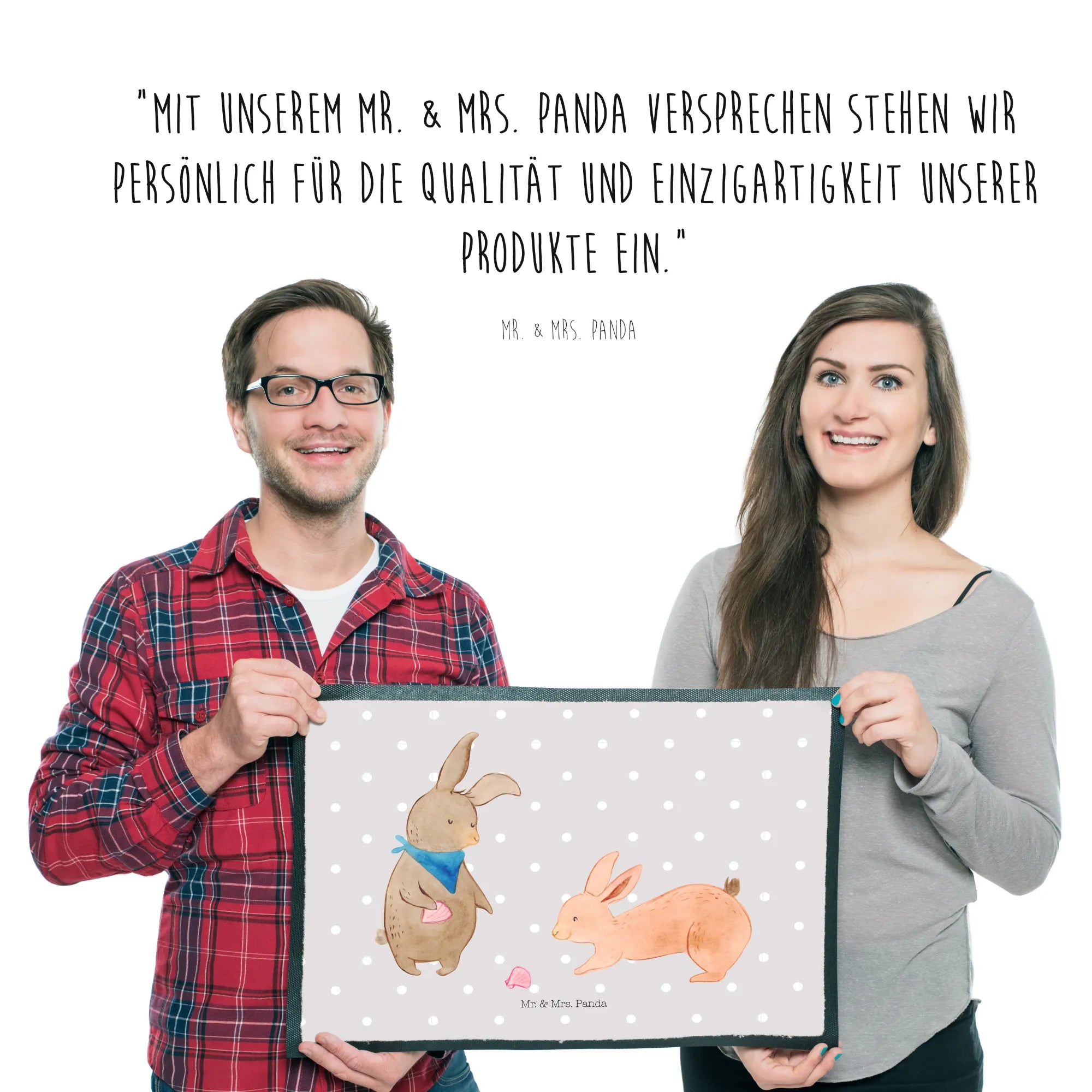 Die Fußmatte "Hasen Muschel" von Mr. & Mrs. Panda ist das perfekte Geschenk für jeden Familienmenschen. Sie bringt nicht nur Freude in den Eingangsbereich, sondern sorgt auch für eine saubere und einladende Atmosphäre in deinem Zuhause. Mit einem liebevoll designten Motiv, das zwei stilisierte Hasen zeigt – einer mit einem süßen blauen Halstuch und die rosafarbene Muschel in den Händen haltend, während der andere neugierig danach greift – hat diese Fußmatte Charme.