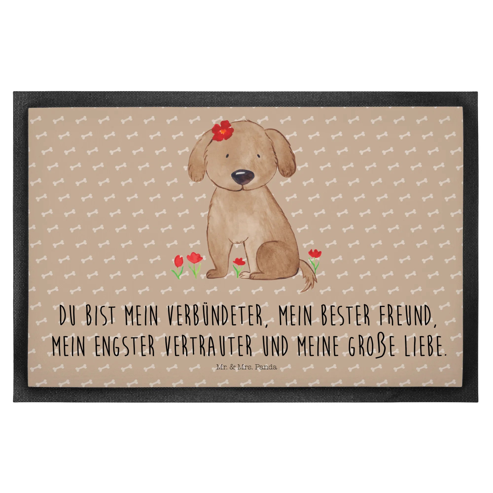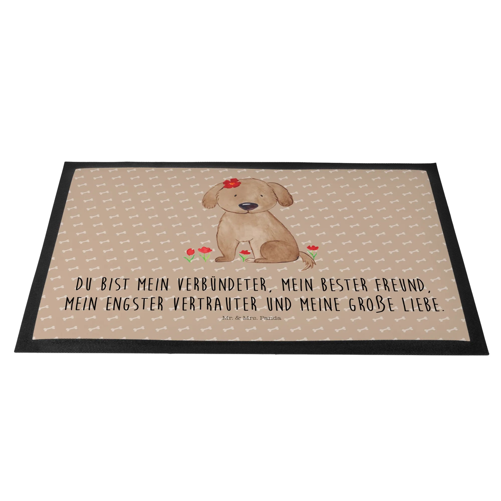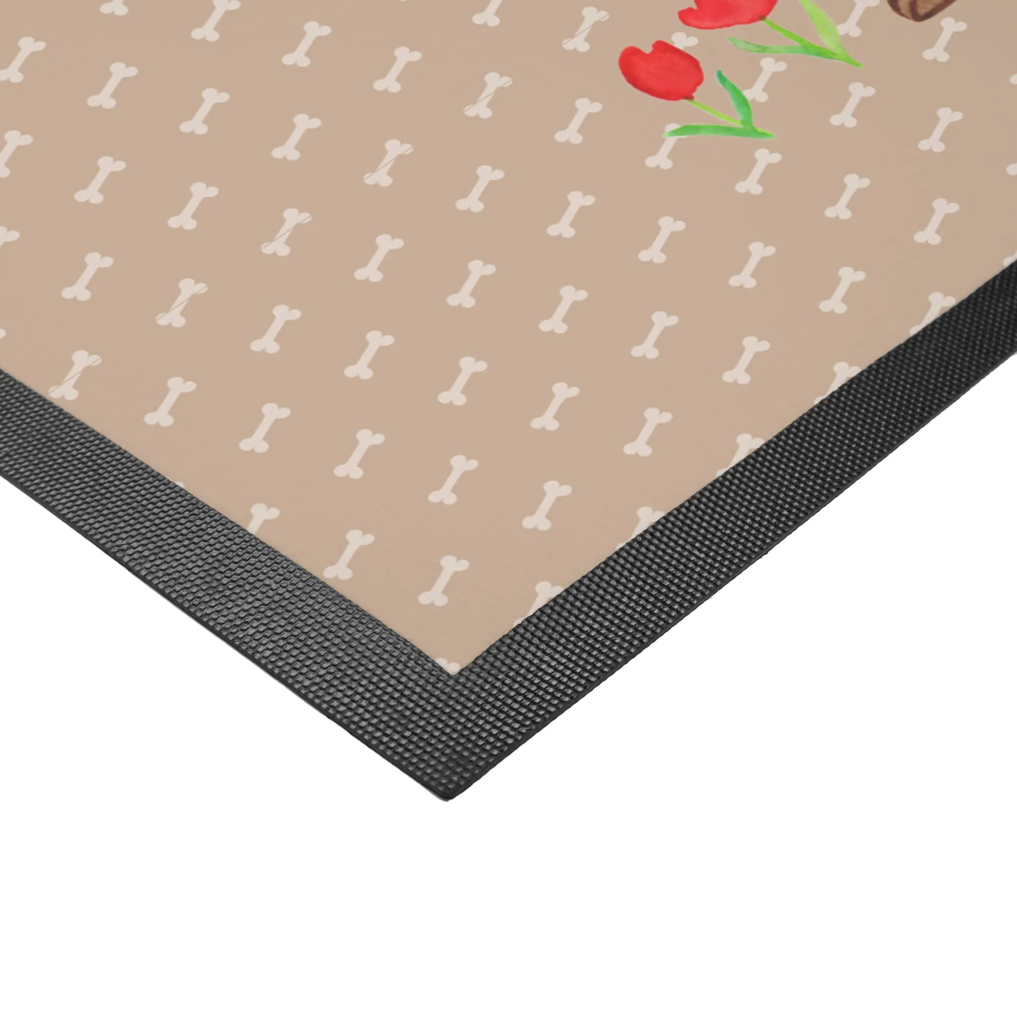 Die perfekte Fußmatte für alle Hundeliebhaber! Unsere Fußmatte "Hund Hundedame" aus der Hunde Kollektion von Mr. & Mrs. Panda ist nicht nur ein schöner Blickfang, sondern auch extrem praktisch. Mit einer niedlichen Hundedame, die eine Blume auf dem Kopf trägt, versüßt sie jedem Besucher den ersten Eindruck beim Betreten deines Zuhauses.