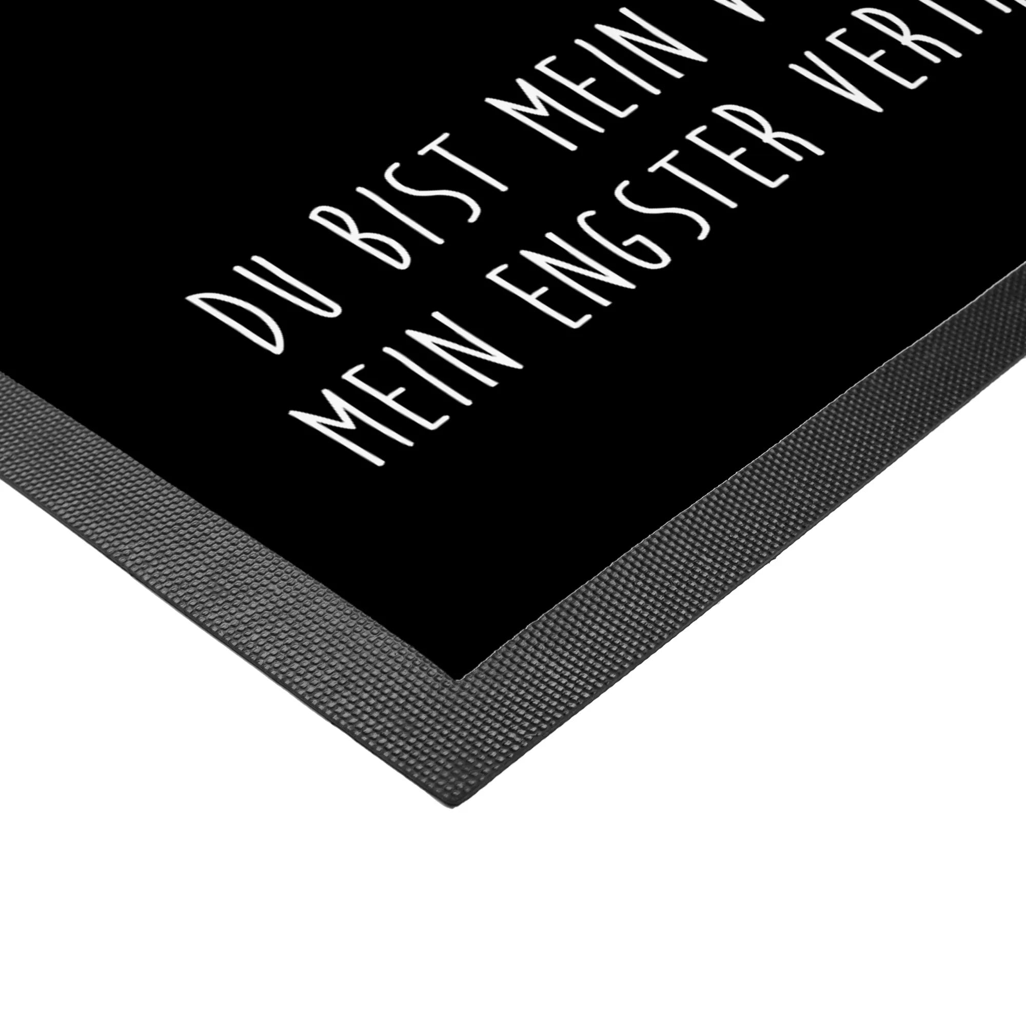 Egal ob du sie an deine Haustür oder im Flur nutzt, diese Fußmatte ist ein echter Blickfang! Mit dem angesagten Motiv 'Du bist mein Verbündeter, mein bester Freund, mein engster Vertrauter und meine große Liebe.' versüßt sie jedem Haustierbesitzer den Tag. Die Fußmatte hat die ideale Größe von 400 mm x 600 mm und ist aus robustem Polyesterfilz hergestellt. Der gummierte Rücken sorgt für einen rutschfesten Halt, während der breite Gummirand das Ausfransen verhindert.