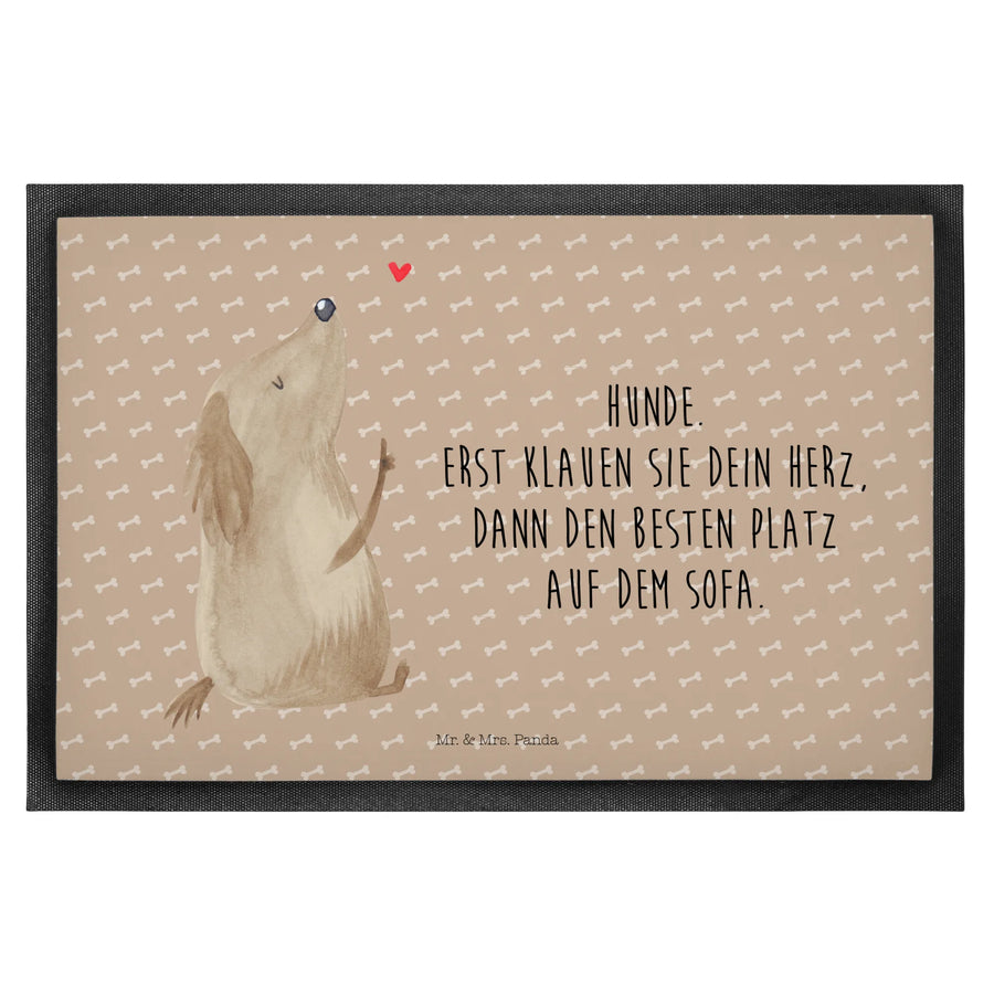 Die Fußmatte 'Hund Liebe' aus der Hunde Kollektion von Mr. & Mrs. Panda ist der perfekte Weg, um deinen Eingangsbereich zu verschönern und gleichzeitig für Sauberkeit zu sorgen. Mit ihrem niedlichen Hundemotiv und dem sprühenden Spruch 'Hunde. Erst klauen sie dein Herz, dann den besten Platz auf dem Sofa.' wird jede Begrüßung an deiner Haustür zu einem kleinen Fest.