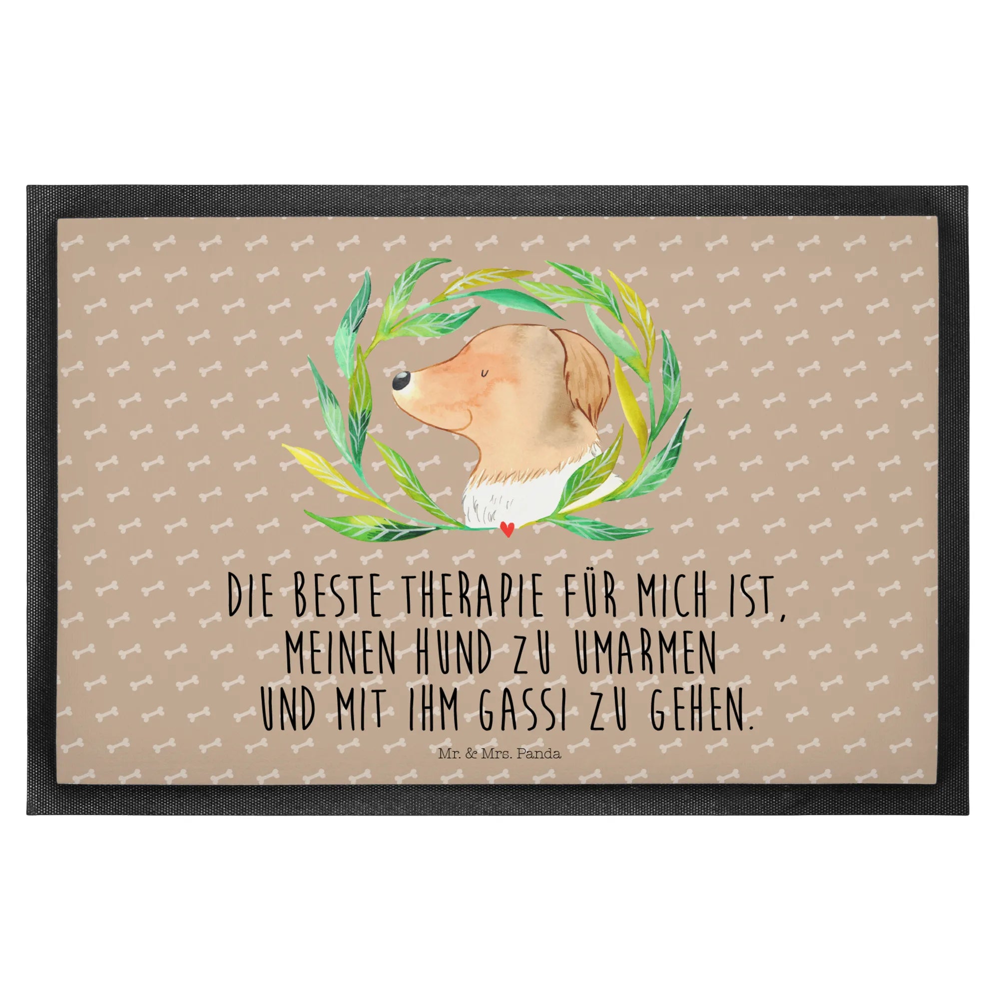 Bist du auf der Suche nach einem besonderen Geschenk für einen Tierliebhaber? Dann ist die Fußmatte "Hund Ranke" aus der Hunde Kollektion von Mr. & Mrs. Panda genau das Richtige für dich! Diese wunderschöne und hochfunktionale Fußmatte verbindet praktischen Nutzen mit einem liebevollen Design. Mit dem niedlichen Motiv eines Hundes, der eine Blume in der Hand hält, zaubert die Matte jedem Hundebesitzer ein Lächeln ins Gesicht. Der Spruch "Die beste Therapie für mich ist, meinen Hund zu umarmen und mit ihm Gassi zu gehen" rundet das Ganze ab und spricht das Herz eines jeden Hundeliebhabers an.