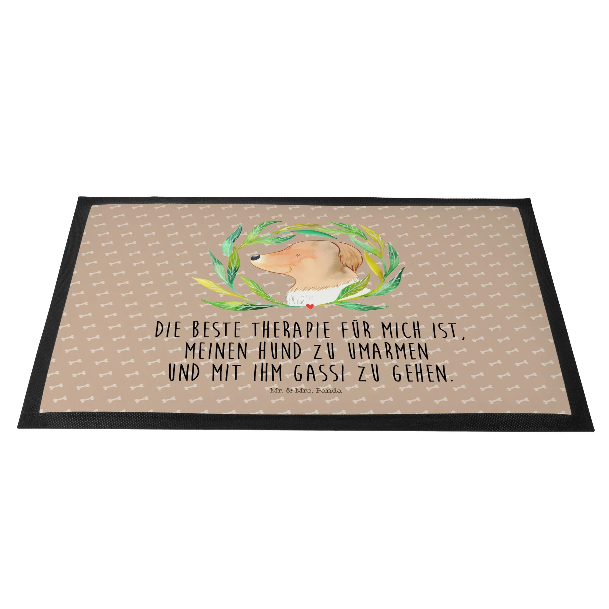 Die Fußmatte "Hund Ranke" von Mr. & Mrs. Panda ist mehr als nur ein schicker Schmutzfänger – sie ist ein Ausdruck deiner Liebe zu Hunden und der beste Weg, um deine Haustür zu verschönern. Diese einzigartige Fußmatte wird perfekt für alle Hundeliebhaber, Tierfreunde und Hundebesitzer sein, die mit einem Lächeln in ihr Zuhause treten möchten. Der liebevoll gestaltete Hund mit einer Blume in der Hand und der Spruch "Die beste Therapie für mich ist, meinen Hund zu umarmen und mit ihm Gassi zu gehen." machen diese Matte zum idealen Geschenk für jeden Anlass.