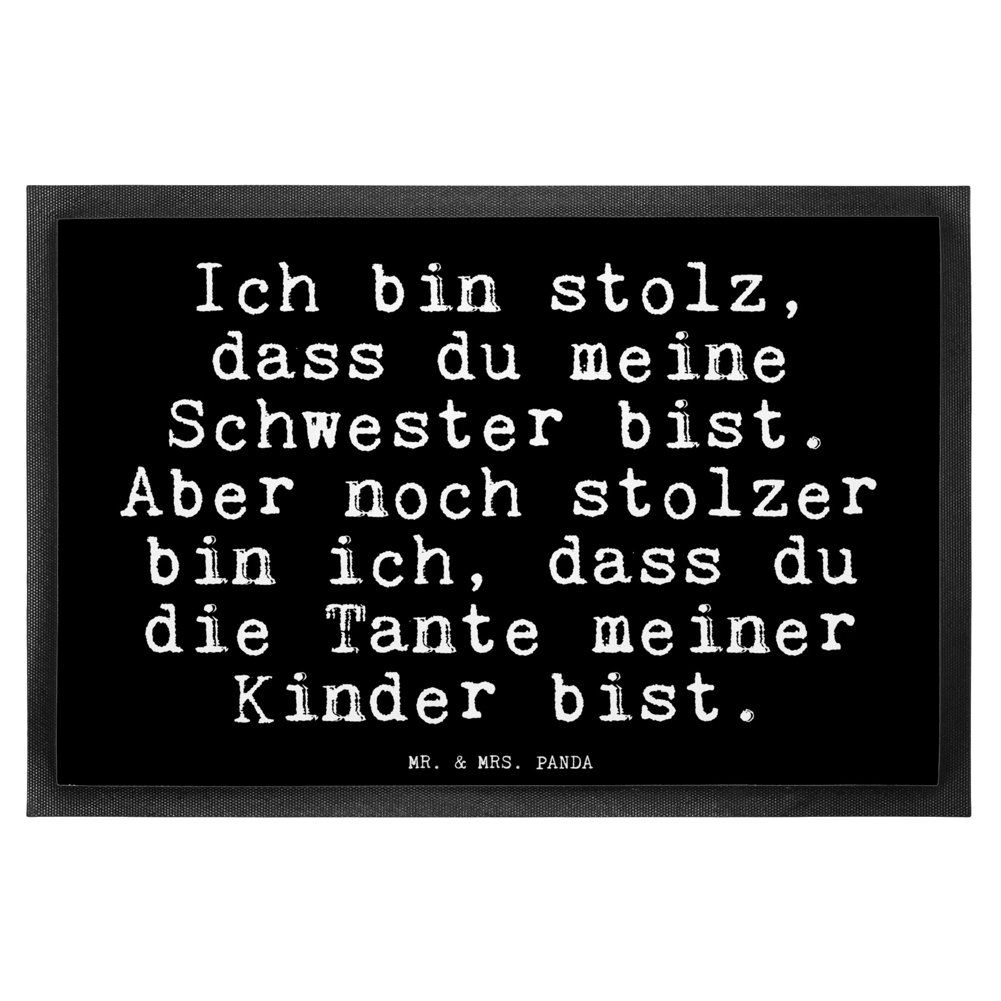Entdecke die wunderschöne Fußmatte von Mr. & Mrs. Panda mit dem liebevollen Spruch "Ich bin stolz, dass du meine Schwester bist. Aber noch stolzer bin ich, dass du die Tante meiner Kinder bist." Diese originelle Schmutzmatte ist nicht nur ein praktischer Schmutzfänger, sondern auch eine herzliche Begrüßung für alle, die deine Haustür betreten. Sie zeigt, wie stolz du auf die besonderen Menschen in deinem Leben bist und macht jedes Zuhause noch einladender.