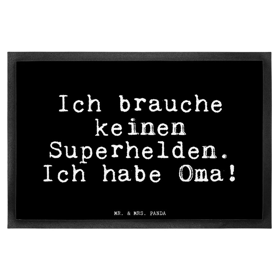 Die Fußmatte "Ich brauche keinen Superhelden. Ich habe Oma!" von Mr. & Mrs. Panda ist das perfekte Geschenk für jeden, der seine Großmutter liebt und schätzt. Mit diesem charmanten Spruch auf der Fußmatte zeigst Du nicht nur, dass Oma die beste Heldin in Deinem Leben ist, sondern bringst auch Freude und Gemütlichkeit in den Eingangsbereich Deines Zuhauses.