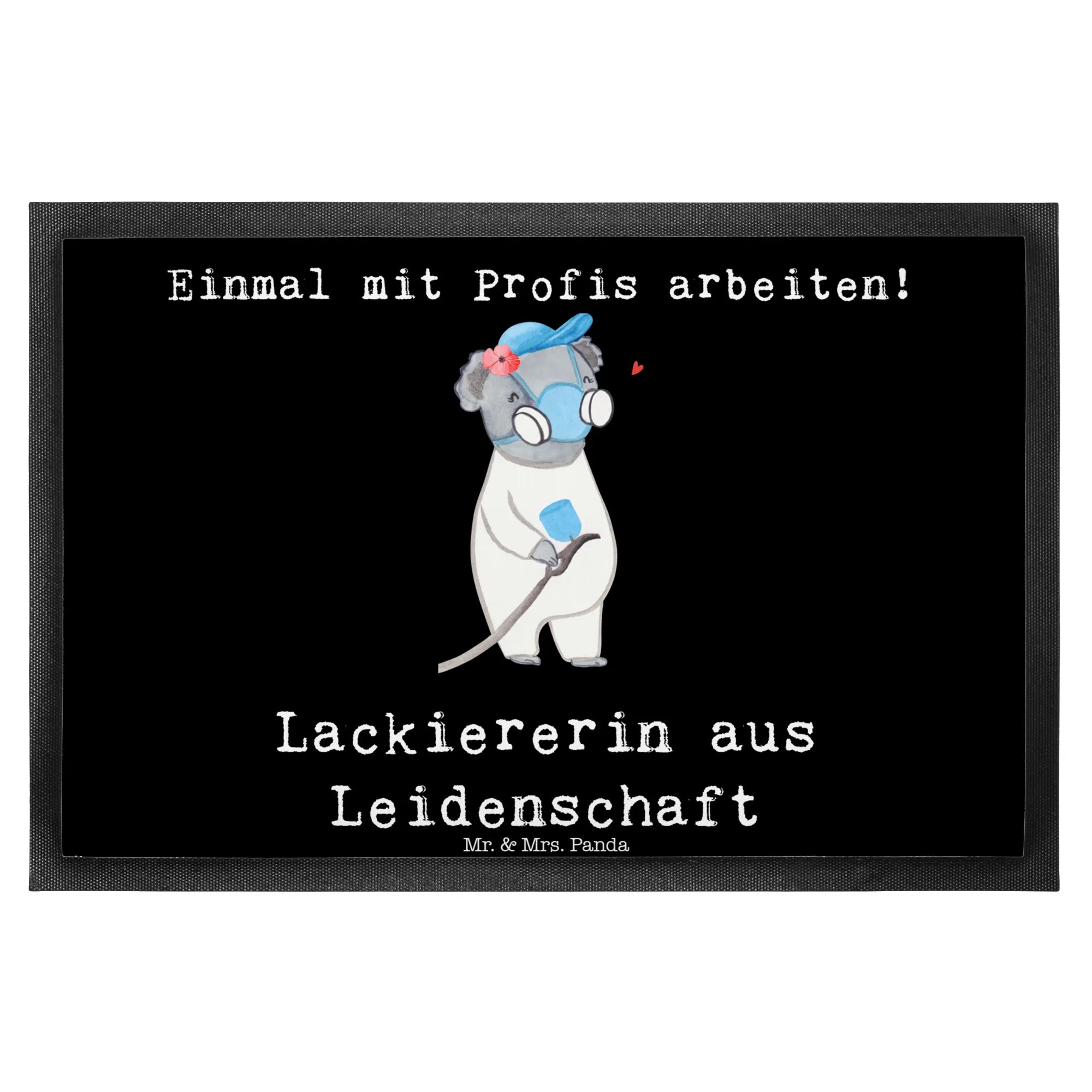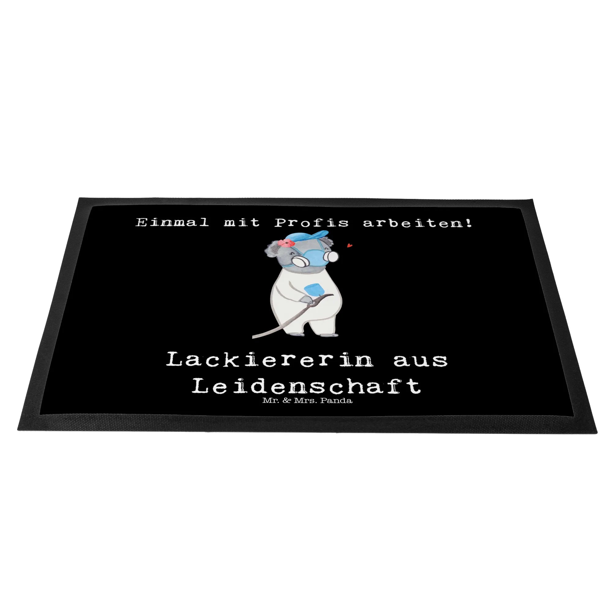 Die Fußmatte "Lackiererin aus Leidenschaft" von Mr. & Mrs. Panda ist das perfekte Geschenk für all jene, die den Beruf der Lackiererin mit Leidenschaft ausüben. Mit einem charmanten Motiv, das eine süße Lackiererin zeigt – ein koaliger Charakter, der fröhlich mit einem Blaumann und einer Spritzpistole posiert – bringt diese Fußmatte nicht nur gute Laune in die Werkstatt, sondern auch Stil ins Zuhause.