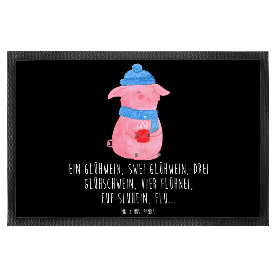 Fußmatte Schweinchen Glühwein - 60 x 90 cm - mit Spruch - Schwarz